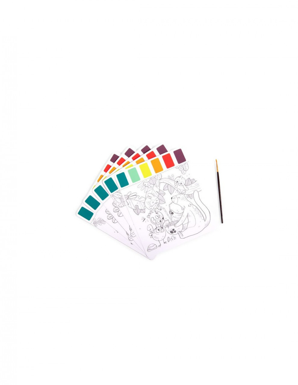 Planse preilustrate pentru pictura In jungla Pictează folosind paleta magică cu pensulă și vopsele incluse - Un joc minunat și creativ din colecția In jungla, Moulin Roty. Mapă cu 10 ilustrații ale personajelor din junglă, de pictat folosind pensula încorporată și paleta de culori. Puțină apă va fi suficientă pentru a dilua vopseaua și hai să le colorăm părul ciufulit! Patru animale viu colorate se joacă, explorează și dansează printre frunzișul dens al junglei! Un univers pop, mereu în mișcare, care te invită să povestești și să participi la aventurile personajelor. Colecția reflectă acest univers colorat oferind o gamă largă de jucării din material textil și lemn, special concepute pentru activitatea celor mici. Dimensiune planșă: 27 x 22 cm Vârsta recomandată: +3 ani. AVERTISMENT: Contraindicat copiilor sub 3 ani, conține piese mici, pericol de sufocare. A se utiliza sub directa supraveghere a unui adult. Producător: Moulin Roty , Franța