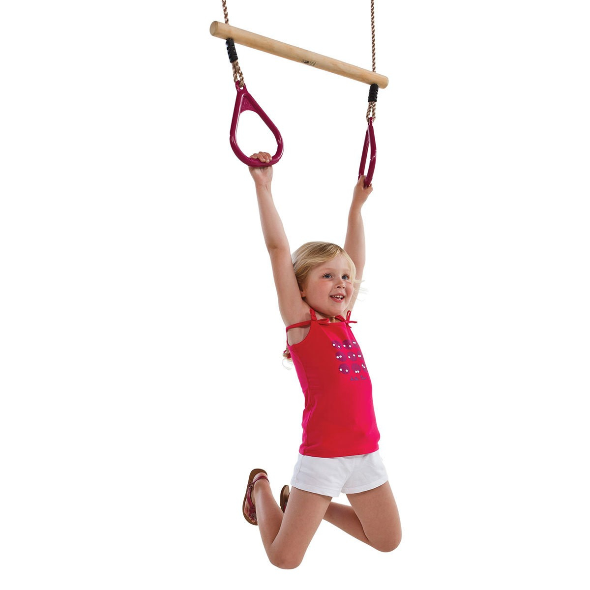 Trapez din lemn cu inele din plastic - PP - rosuTrapezul este realizat din lemn de esenta tare, tratat cu produse pe baza de cupruAvantaje produs:Trapez realizat din lemn de esenta tare, tratat cu produse pe baza de cupruInelele de gimnastica sunt turnate prin injectieSfoara PP10Caracteristici:Lungime reglabila agatare: 2,05-2,4 m.Dimensiuni: � 35 x 580 / 165 x 20 x 210 mm Pentru varste peste 3 ani