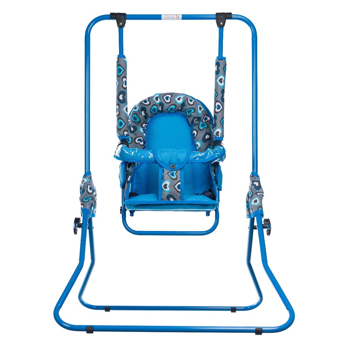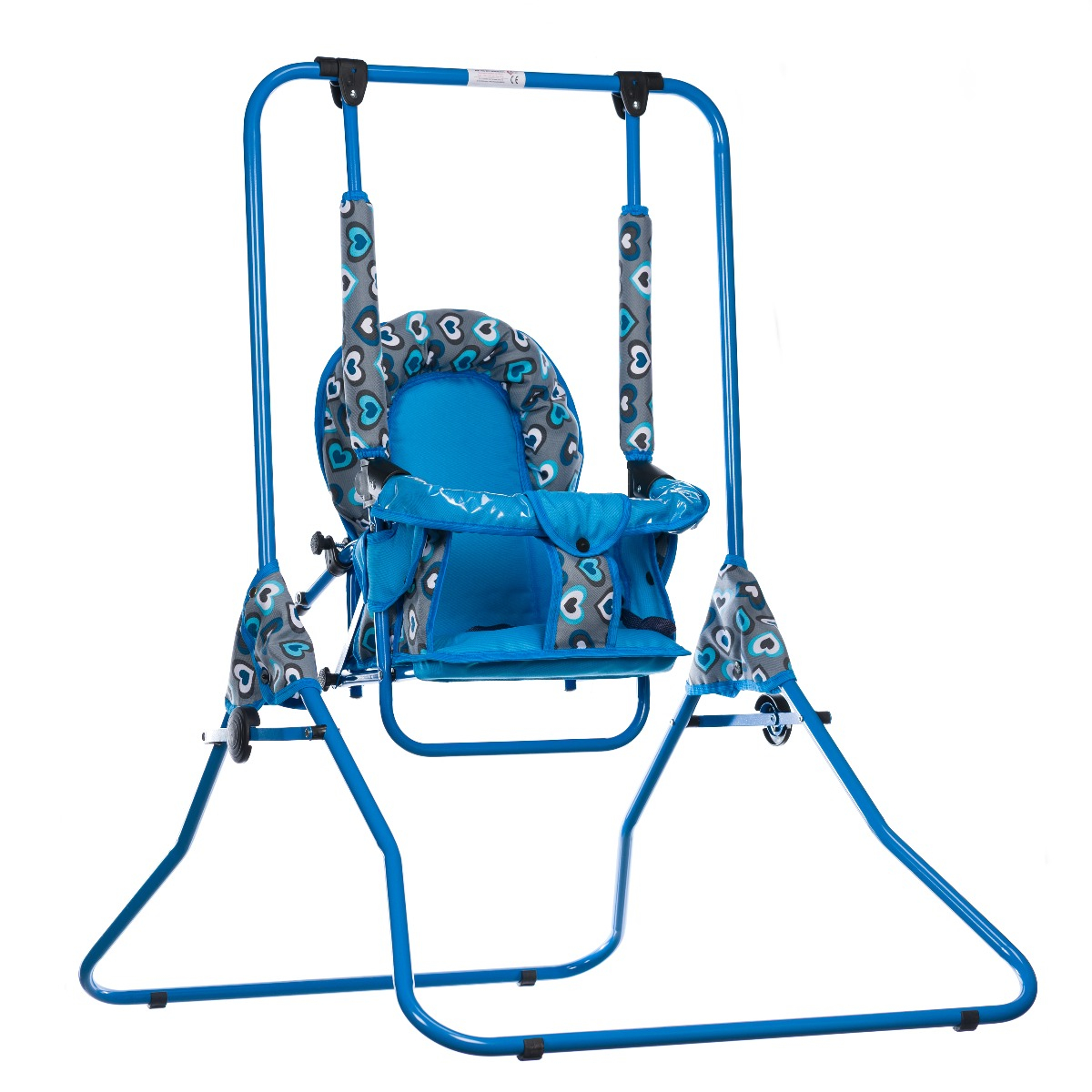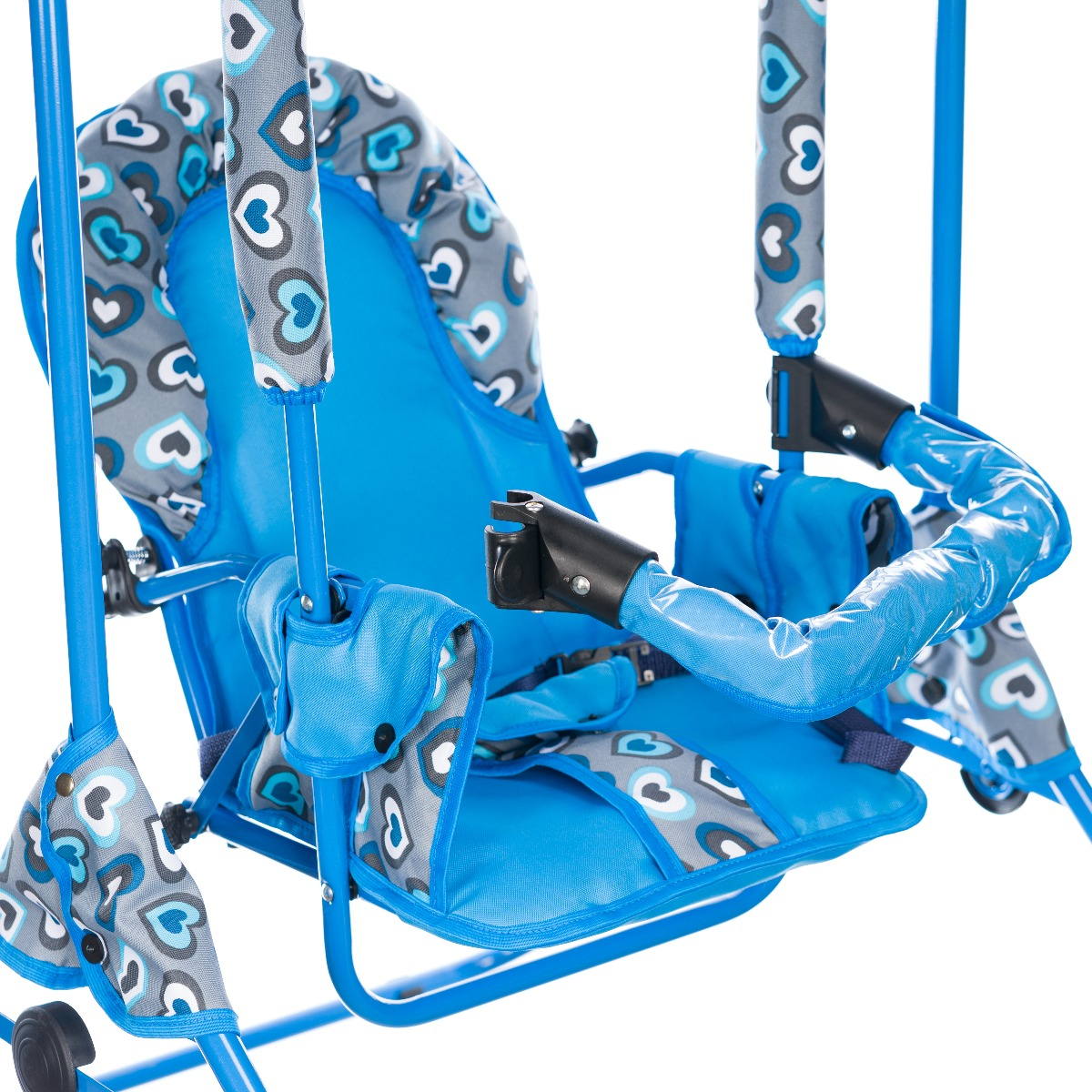 Leagan pentru copii, AppeKids, cu spatar reglabil si bara detasabila, Blue Hearts
