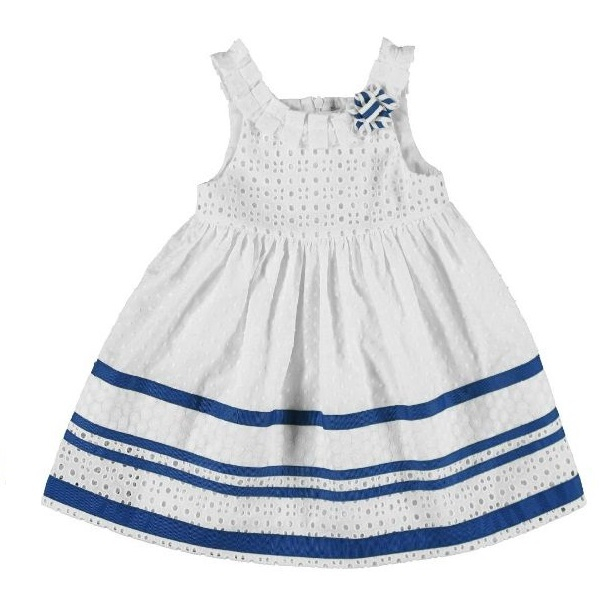 Rochie alba cu broderie englezeasca si insertii albastre (3928), 80 cm / 12 luni