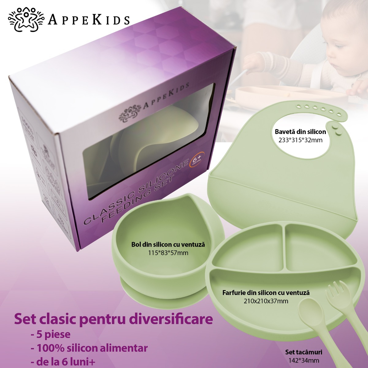 Set Diversificare, AppeKids, 100% Silicon, Classic - Raw Green