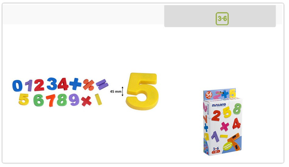 54 számból álló készlet mágnesekkel a számok tanulásához, a számoláshoz és az elsődleges aritimetikus műveletekhez.