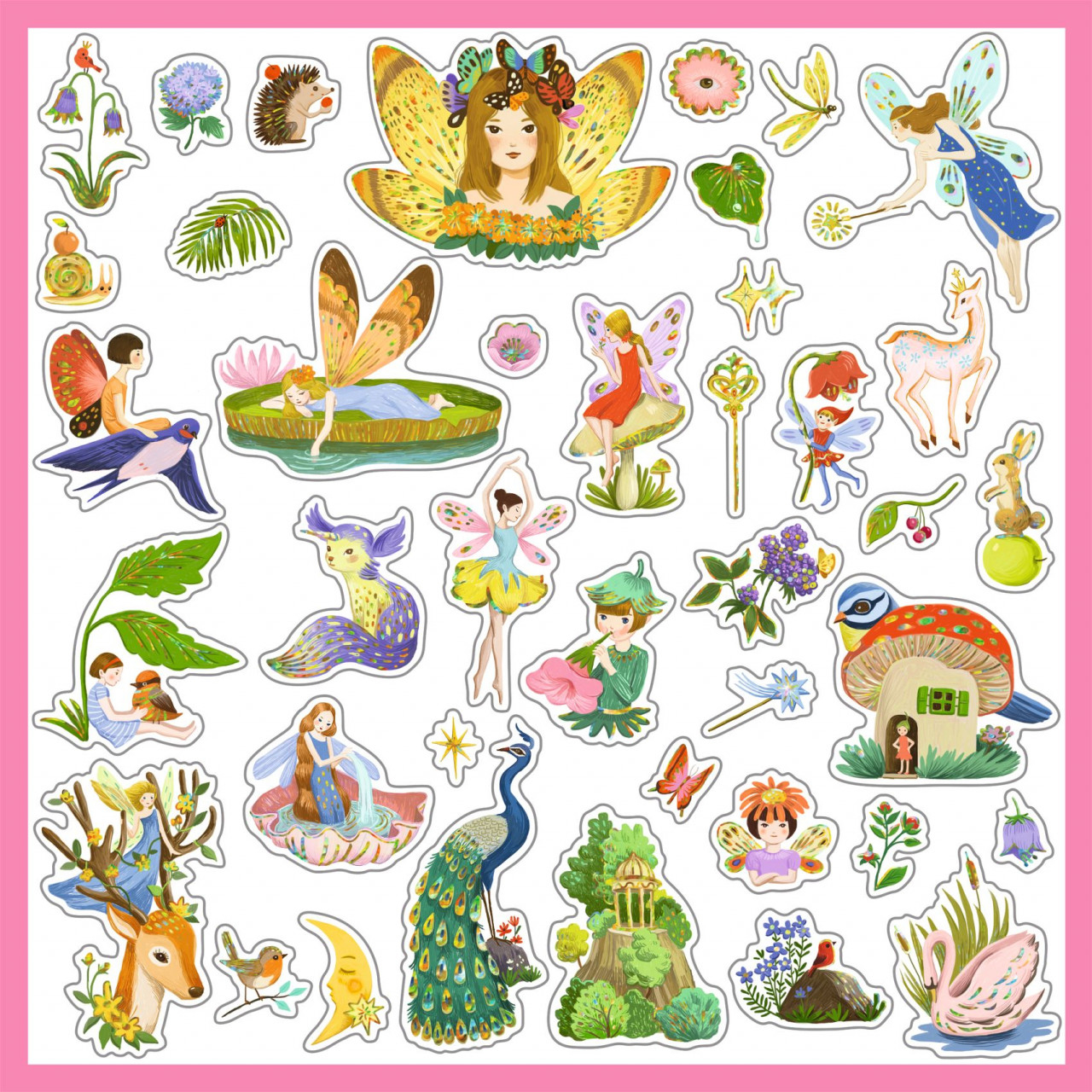 Abtibilduri metalice Fiinte fantastice: 160 de autocolante metalice, cu elfi, zâne, unicorni şi spirite de pădure pe 4 coli de hârtie cu zone metalice, certificate FSC®. Varsta recomandata: 4-7 ani.