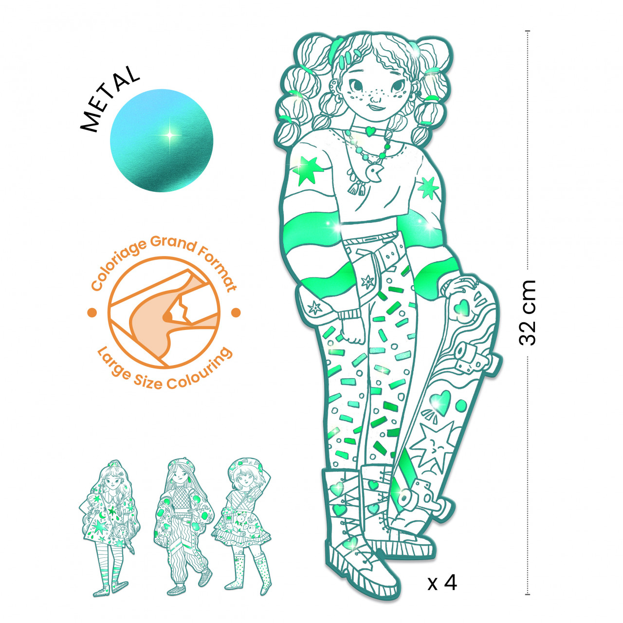 Parada modei de colorat Angel & Prietenele ofera copiilor posibilitatea sa colorizeze tinutele asa cum prefera. Contine 4 conturi lungi de 32 cm si zone metalice. Setul este destinat copiilor de peste 6 ani si certificat FSC®.
