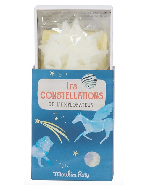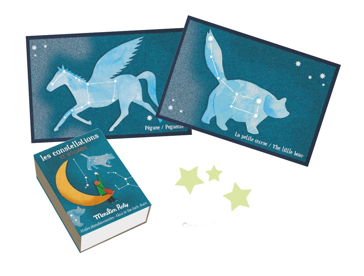 Jó éjszakát és szép álmokat, a csillagos ég alatt, még a szobádban is. A készlet fluoreszkáló csillagokat és kártyákat tartalmaz, amelyeket a falakon és a mennyezeten 10 leghíresebb csillagkép újjáépíthet. vagy azok, amelyeket elképzeltél. FIGYELMEZTETÉS: Használja felnőtt közvetlen felügyelete mellett. Ez nem játék. Gyártó: Moulin Roty, Franciaország