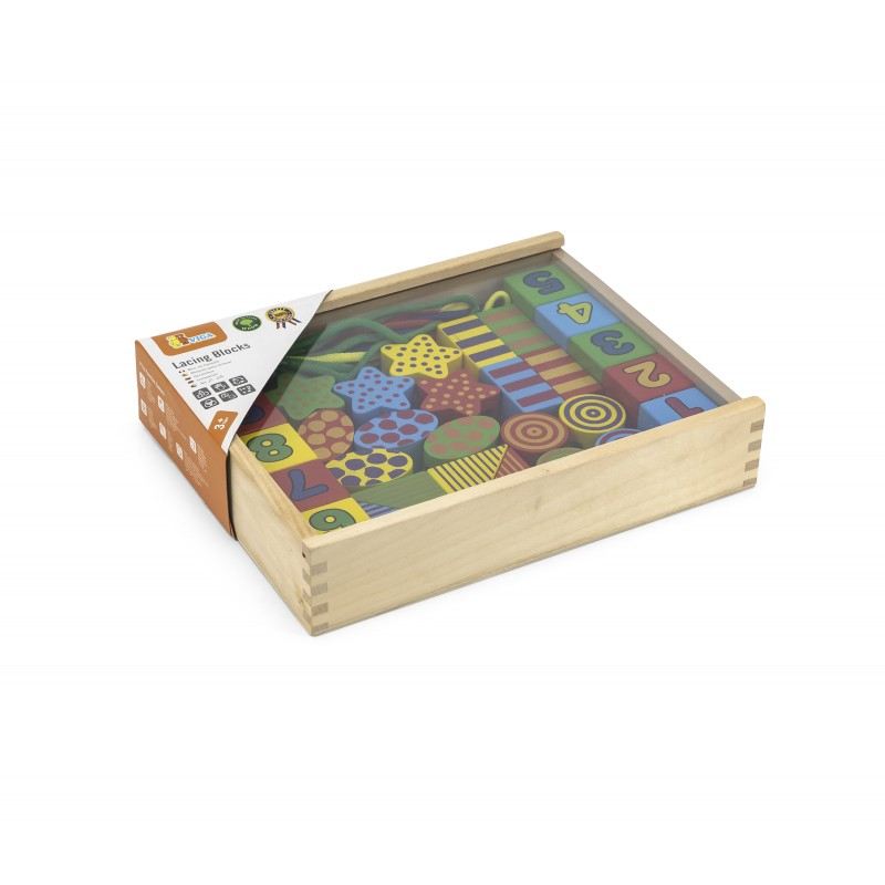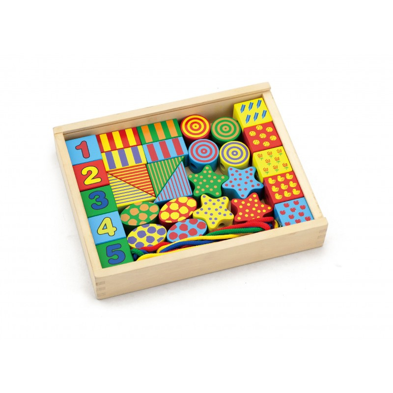 Margele mari din lemn de insirat, cu forme, cifre si culori