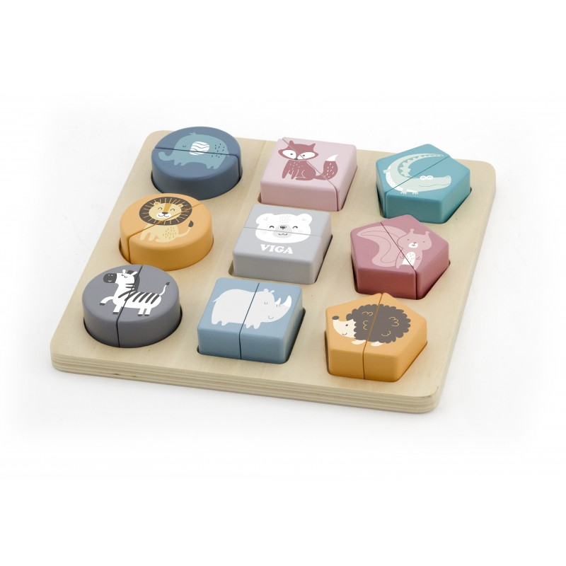 Puzzle din cuburi din lemn cu animale salbatice, PolarB Viga