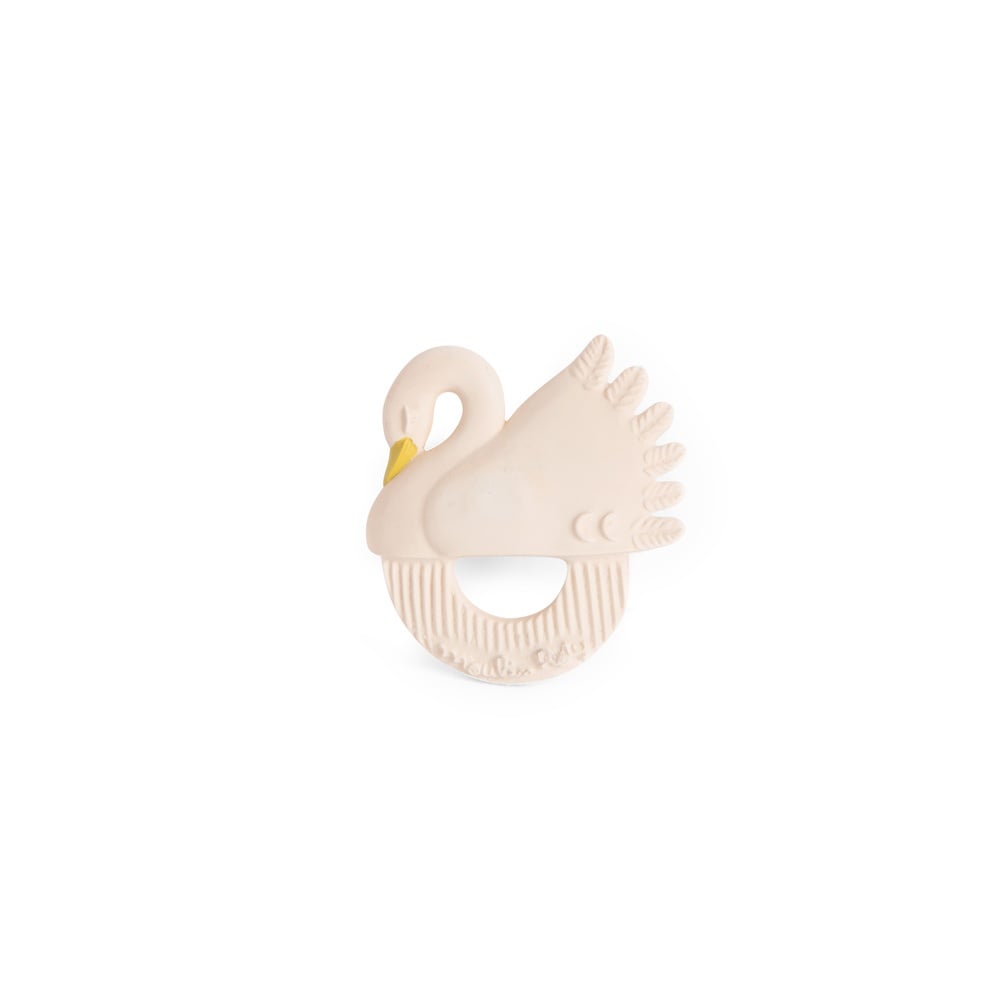 Hattyú fogzó gyűrű A hattyú fogazó gyűrű, amelyet a kis kezek könnyen megfoghatnak, felébreszti a baba érzékszerveit és megnyugtatja az ínyt. Babaágyban is használható. Méretek: 9,5 x 9 x 0,5 cm Anyaga: 100% természetes gumi. Ajánlott életkor: +0 év. Gyártó: Moulin Roty, Franciaország.