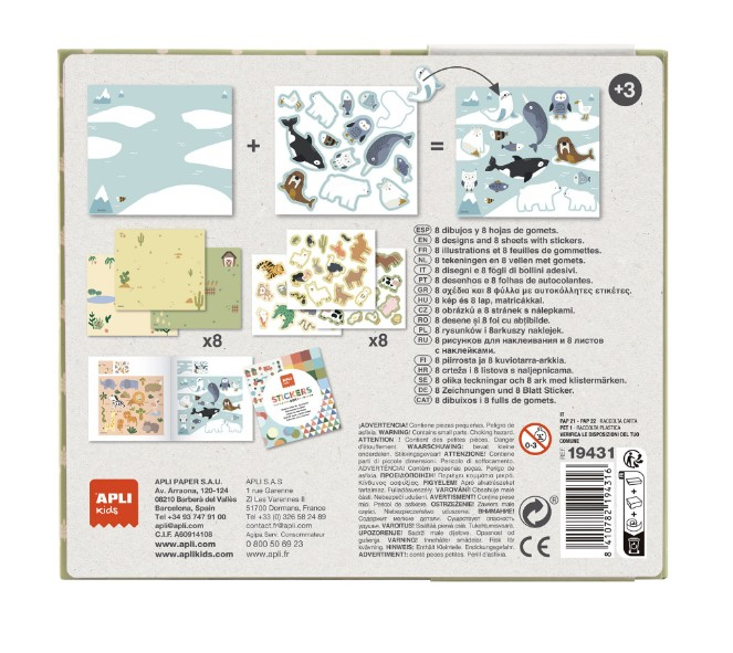 Joc creativ cu autocolante, Animale si habitatul lor, APLI, 3 ani+