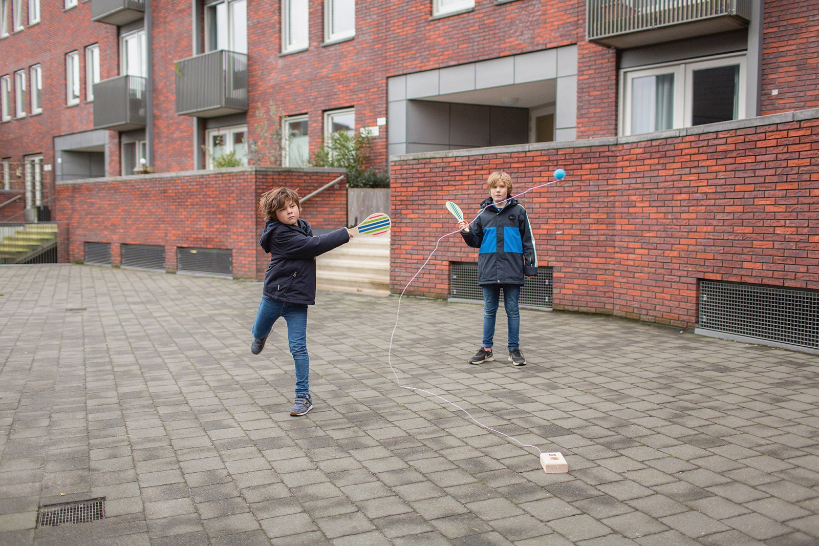 Joc de tenis copii cu elastic si rachete lemn - jucarii de exterior - BS Toys