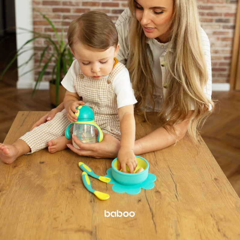 Set lingurita si furculita flexibile Baboo - Galben Verde, 6 luni+