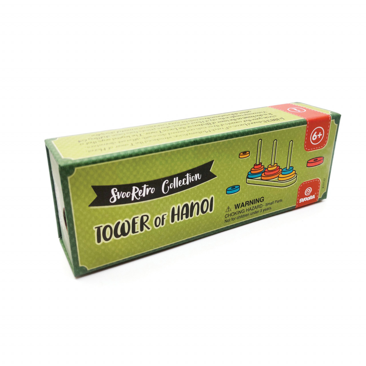 Joc de logica Turnul din Hanoi Turnul din Hanoi este un puzzle matematic care promovează gândirea strategică și raționamentul secvențial. Prin intermediul acestuia, copiii devin mai atenți, își dezvoltă concentrarea și se familiarizează cu procedurile de discriminare a mărimilor și de rezolvare a problemelor. Ambalaj cu design retro cu piese din lemn, ușor de asamblat și gata de joacă! Instrucțiuni de joc în 6 limbi (engleză, greacă, italiană, spaniolă, germană, franceză). Scopul jocului este de a muta întregul teanc până la ultimul disc, respectând regulile de mai jos: 1.Fiecare mutare constă în a lua discul de deasupra de pe una dintre stive și a-l plasa deasupra altei stive sau pe o tijă goală. 2. Se poate muta doar un singur disc la un moment dat. 3. Niciun disc nu poate fi așezat deasupra unui disc mai mic decât el. Puzzle-ul poate fi jucat cu un număr diferit de discuri, de la doar 3 discuri, pentru un început ușor, până la 8 discuri. Numărul minim de mutări necesare pentru a rezolva puzzle-ul este 2n-1, unde n este numărul de discuri. De exemplu, dacă se joacă cu 4 discuri, numărul minim de mutări pentru rezolvarea puzzle-ului este de 7 mutări. Vârsta recomandată: + 6 ani. Fabricat din lemn de fag cu vopsea pe baza de apa. Conform standardelor EN71, ASTM. AVERTISMENT! Contraindicat copiilor sub 3 ani. A se folosi sub directa supraveghere a unei persoane adulte. Producător: Svoora, Grecia Dimensiuni: 20 cm