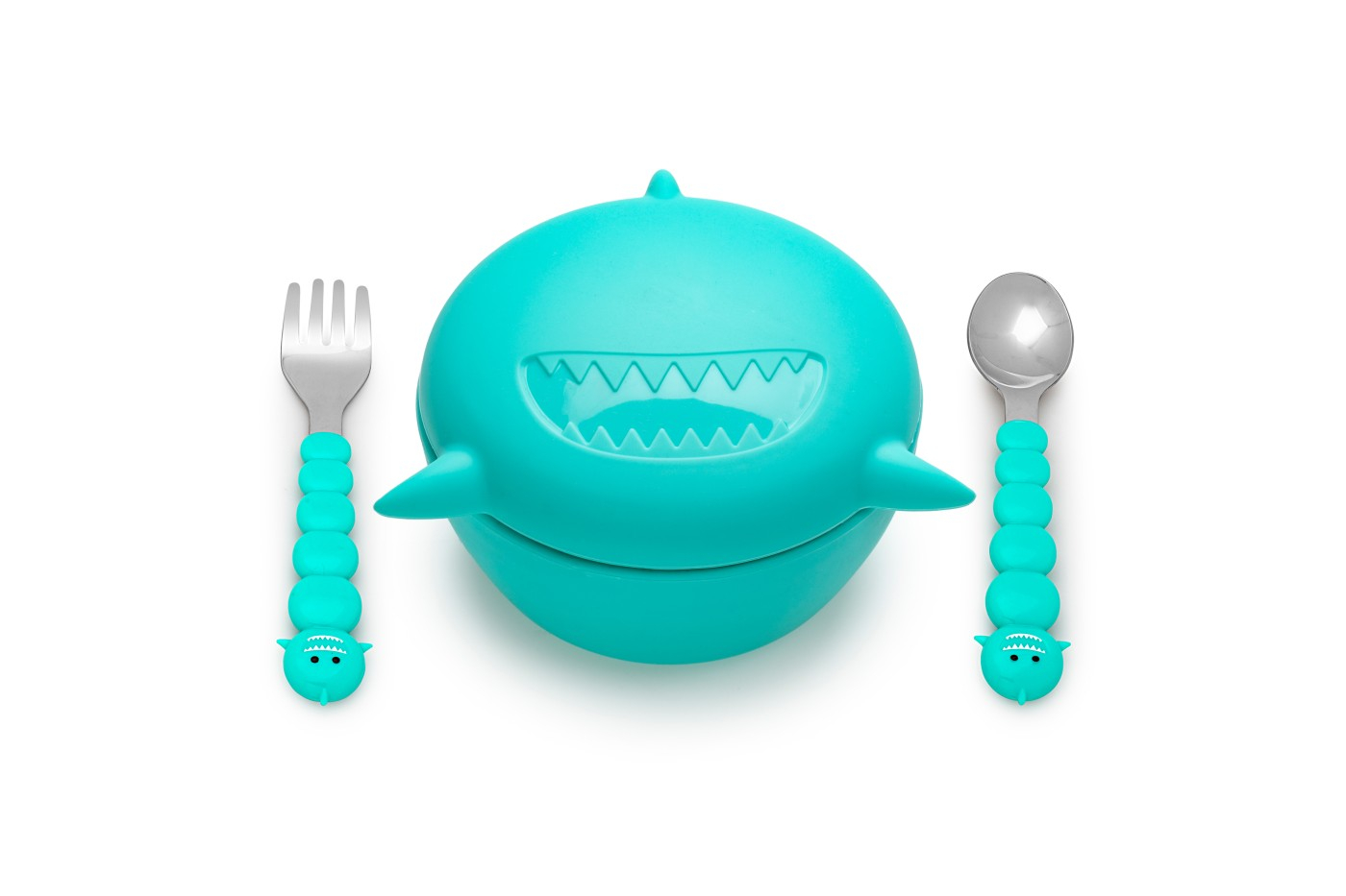 Castronel din silicon cu capac animal si tacamuri, Melii, model rechin Facem hranirea independenta a copiilor sa fie o distractie cu seturile noastre de castronele din silicon cu capac animal si tacamuri, Melii, in culorile vibrante ale bulldogului, pisicii, rechinului si ursului! Aceste ustensile distractive si captivante nu numai ca ii tin pe cei mici incantati, dar si sustin hranirea independenta si dezvoltarea abilitatilor motorii fine, chiar daca acestia sfarsesc acoperiti de piure de mere din cap pana la picioare. Castronelul este confectionat din silicon de cea mai inalta calitate, adecvat pentru alimente, durabil, flexibil si usor de intretinut, fiind in acelasi timp usor si potrivit pentru masina de spalat vase pe raftul superior. Transforma timpul mesei intr-o aventura cu acest recipient pentru mancare, perfect ca dimensiune pentru copii si rezistent la scurgeri! cu Bolul din Silicon Meliimodel Animal -rechin este ideal pentru diverse utilizari, de la potrivirea perfecta in cutiile de pranz pana la depozitarea resturilor de mancare, gustari, mese si multe altele. Creat pentru a rezista la caderi accidentale si la joaca energica, toate acestea intr-o constructie usoara, facandu-l usor de purtat de catre copilul tau in jurul lor, cu snack-urile preferate mereu la indemana. CARACTERISTICI PRODUS DURABIL - Perfect pentru acasa sau in deplasare, containerele noastre cu animale sunt durabile si usoare, realizate din silicon alimentar de inalta calitate. Containerul din silicon sigileaza cu un capac cu insurubare - componentele capacului sunt realizate din nylon rezistent la temperaturi ridicate. ANTI-SCURGERE - Containerul nostru de 350 ml are un capac antiscurgere care sigileaza prospetimea si ajuta la prevenirea dezastrului! UsOR DE UTILIZAT - Realizat din silicon alimentar de inalta calitate, acest bol cu capac este durabil, flexibil, usor, ideal pentru utilizare in cutiile de pranz, depozitarea usoara a resturilor de mancare, gustari, mese si altele. UsOR DE CURatAT - Poate fi curatat in masina de spalat vase pe raftul superior. FaRa BPA, fara plumb, fara cadmiu si fara PVC.