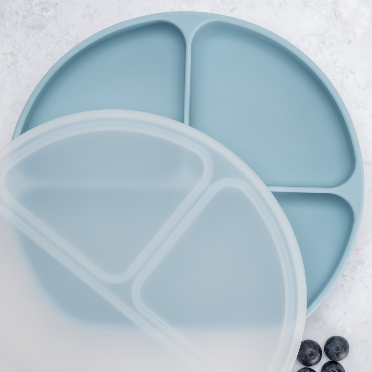 Farfurie compartimentata din silicon cu ventuza si capac, AppeKids - Aqua Blue