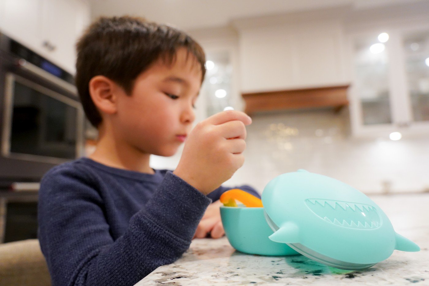 Castronel din silicon cu capac animal, Melii, model rechin Îmbogateste momentele petrecute la masa de copilul tau cu Bolul din Silicon Meliimodel Animal, echipat cu capac in forma de rechin. Acest container de mancare fermecator si prietenos cu copiii nu adauga doar o nota distractiva, ci este si practic. Confectionat din silicon de cea mai inalta calitate, adecvat pentru alimente, ofera durabilitate, flexibilitate si intretinere usoara, fiind in acelasi timp usor si potrivit pentru masina de spalat vase pe raftul superior. Transforma timpul mesei intr-o aventura cu acest recipient pentru mancare, perfect ca dimensiune pentru copii si rezistent la scurgeri! Bolul din Silicon Meliimodel Animal -rechin este ideal pentru diverse utilizari, de la potrivirea perfecta in cutiile de pranz pana la depozitarea resturilor de mancare, gustari, mese si multe altele. Creat pentru a rezista la caderi accidentale si la joaca energica, toate acestea intr-o constructie usoara, facandu-l usor de purtat de catre copilul tau in jurul lor, cu snack-urile preferate mereu la indemana. CARACTERISTICI PRODUS DURABIL - Perfect pentru acasa sau in deplasare, containerele noastre cu animale sunt durabile si usoare, realizate din silicon alimentar de inalta calitate. Containerul din silicon sigileaza cu un capac cu insurubare - componentele capacului sunt realizate din nylon rezistent la temperaturi ridicate. ANTI-SCURGERE - Containerul nostru de 350 ml are un capac antiscurgere care sigileaza prospetimea si ajuta la prevenirea dezastrului! UsOR DE UTILIZAT - Realizat din silicon alimentar de inalta calitate, acest bol cu capac este durabil, flexibil, usor, ideal pentru utilizare in cutiile de pranz, depozitarea usoara a resturilor de mancare, gustari, mese si altele. UsOR DE CURatAT - Poate fi curatat in masina de spalat vase pe raftul superior. FaRa BPA, fara plumb, fara cadmiu si fara PVC.