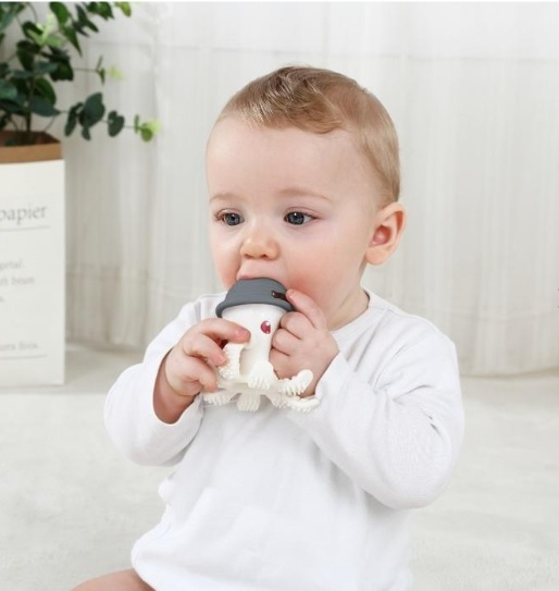 • designul special de forma unei caracatite are tentaculele cu rizuri pentru masajul gingiilor bebelusului;