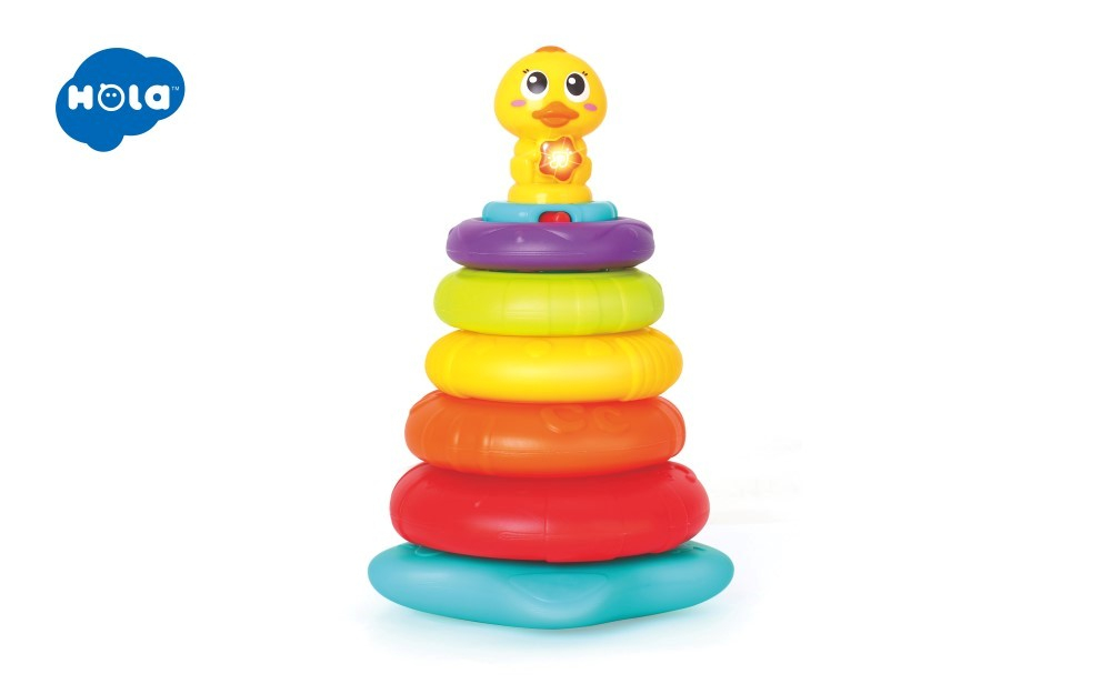 Jucaria pentru bebelusi Hola Toys Ratusca cu lumini si sunete raspunde curiozitatilor copilului, dezvoltandu-i abilitatea de explorare. Copilul construieste singur piramida dezvoltandu-si coordonarea mana-ochi si simtul echilibrului. Formarea piramidei, culorile vii si diferitele forme circulare atrag atentia si curiozitatea copilului. Jocul cu ratusca pe piramida ajuta la antrenarea vazului, auzului si simtului tactil al copilului. Abilitatea de formare a piramidei ajuta la imbunatatirea coordonarii mana-ochi, la recunoasterea culorilor, dimensiunilor si greutatii, stimuland inteligenta. Asezarea treptelor piramidei curcubeu va declansa diferite sunete amuzante stimuland abilitatea de explorare a copilului. - Dezvoltarea simturilor Culorile vii, muzica linistitoare si atingerea ratustei il ajuta pe copil sa-si dezvolte simturile si sa creasca sanatos. - Dezvoltarea simtului recunoasterii Prin realizarea piramidei, se imbunatateste simtul numaratului, al ordonarii, al stivuirii, greutatii si spatiului. - Coordonare mana-ochi Pentru atingerea obiectivului, copilul are nevoie de coordonarea mana-ochi pentru a apuca, tine, stivui si construi. Aceasta va fi o fundatie folositoare pentru abilitatile viitoare de scriere, pentru pictat si orice alta activitate. Produsul este recomandat copiilor de la varsta de 6 luni+ Produsul functioneaza cu 2 baterii &bdquoAAA de 1,5 V ce sunt incluse. Dimensiuni cutie 19.5×15.5×25 cm Dimensiuni produse 14.3×13.5×22 cm Pretul acestui produs include taxa de timbru verde.
