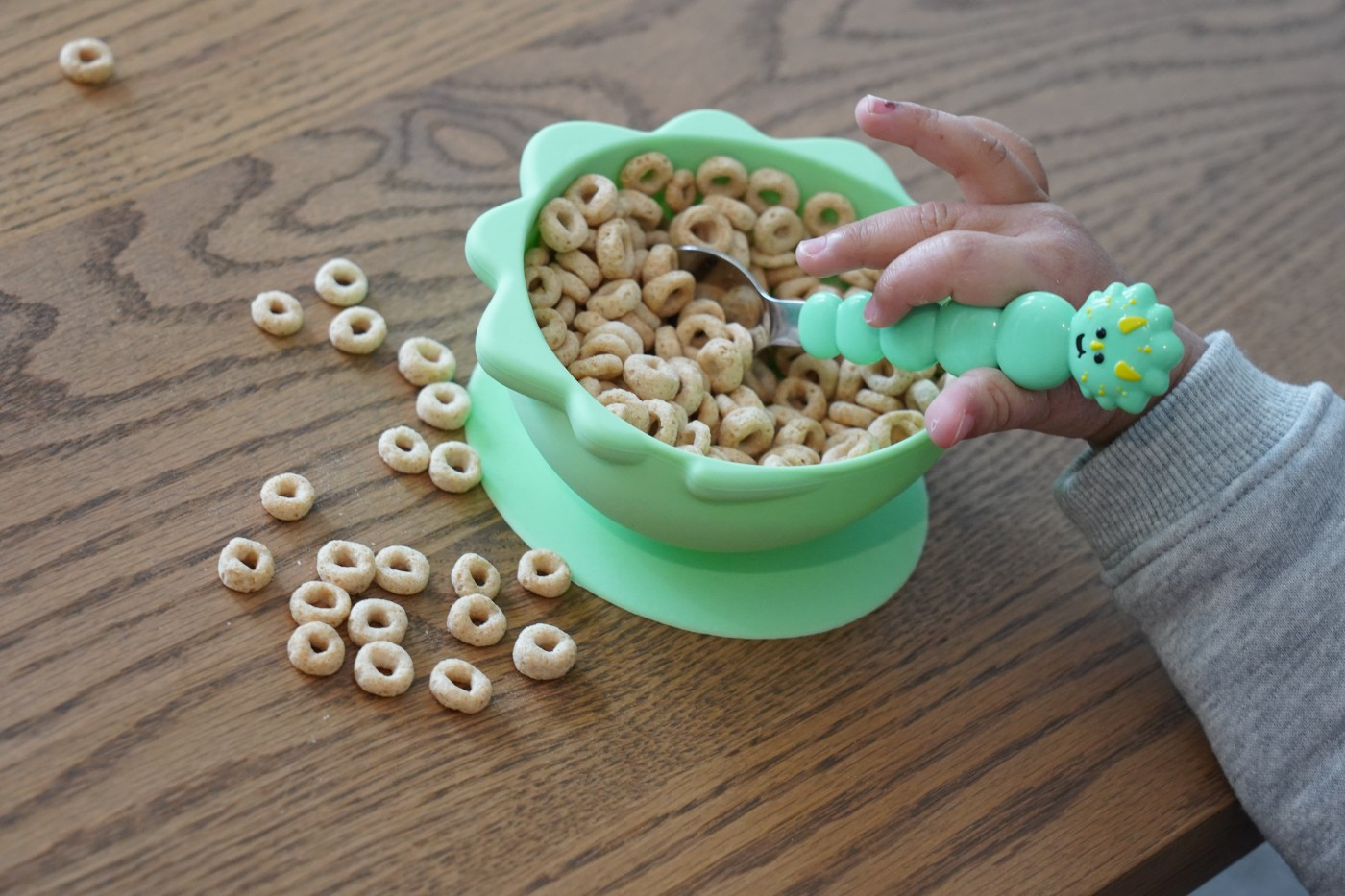 Set 2 boluri silicon cu ventuza, Melii, model dinozaur Sa fim sinceri, hranirea copiilor nu este o sarcina usoara - este dezordonata! Bolurile noastre cu ventuza din 100% silicon sunt menite sa faca ora mesei mai putin stresanta si mai distractiva. Pur si simplu plaseaza-l pe o suprafata plata si lasa ventuza sa faca magia. Nu mai trebuie sa-ti faci griji ca bolurile vor zbura si ajung rasturnate pe podea! Varietatea de designuri cu animale incurajeaza alimentatia independenta, creand o asociere pozitiva cu ora mesei. Aceasta caracteristica este ideala pentru bebelusi si copii mici, pe masura ce invata sa se hraneasca singuri. Compatibil cu toate tipurile de scaune inalte. Fa din ora mesei o activitate distractiva cu copilul tau! Mai putin stres si FaRa MIZERIE! Colectioneaza toate cele 5 modele dragute de animale. CARACTERISTICI PRODUS Design vesel si prietenos 100% realizate din silicon alimentar, ventuza mare care mentine bolul fixat, capacitate 300ml, include 2 boluri la pachet. Sigure pentru utilizare in cuptorul cu microunde sau congelator sii cel mai important, animalele fac hranirea distractiva! Se pot cuibari si stivui cu usurinta in dulapurile din bucatarie pentru o depozitare compacta. Ajuta la alimentatia independenta Bolurile Melii cu ventuza model dinozaur sunt 100% din silicon si vor incuraja alimentatia independenta si dezvoltarea abilitatilor motorii fine. Diferitele designuri cu animale ofera o asociere pozitiva cu ora mesei. Bolul ramane pe loc, indiferent cat de tare incearca mancaciosul tau sa il arunce pe podea. Excelent pentru bebelusi si prescolarii care invata sa se hraneasca singuri. Se potriveste cu toate scaunele inalte. Non-toxice Produsele Melii sunt de inalta calitate si nu contin substante chimice nocive fara BPA, fara plumb, fara cadmiu, fara PVC si sunt fabricate din 100% silicon alimentar. Sunt fabricate din silicon moale si durabil, fara margini ascutite. Sunt rezistente si flexibile. Utilizare in masina de spalat vase Curatati temeinic cu detergent si apa calda sau pe raftul superior al masinii de spalat vase inainte de prima utilizare si dupa cum este necesar. Inspectati produsul inainte de fiecare utilizare si aruncati-l la primul semn de deteriorare sau slabiciune.