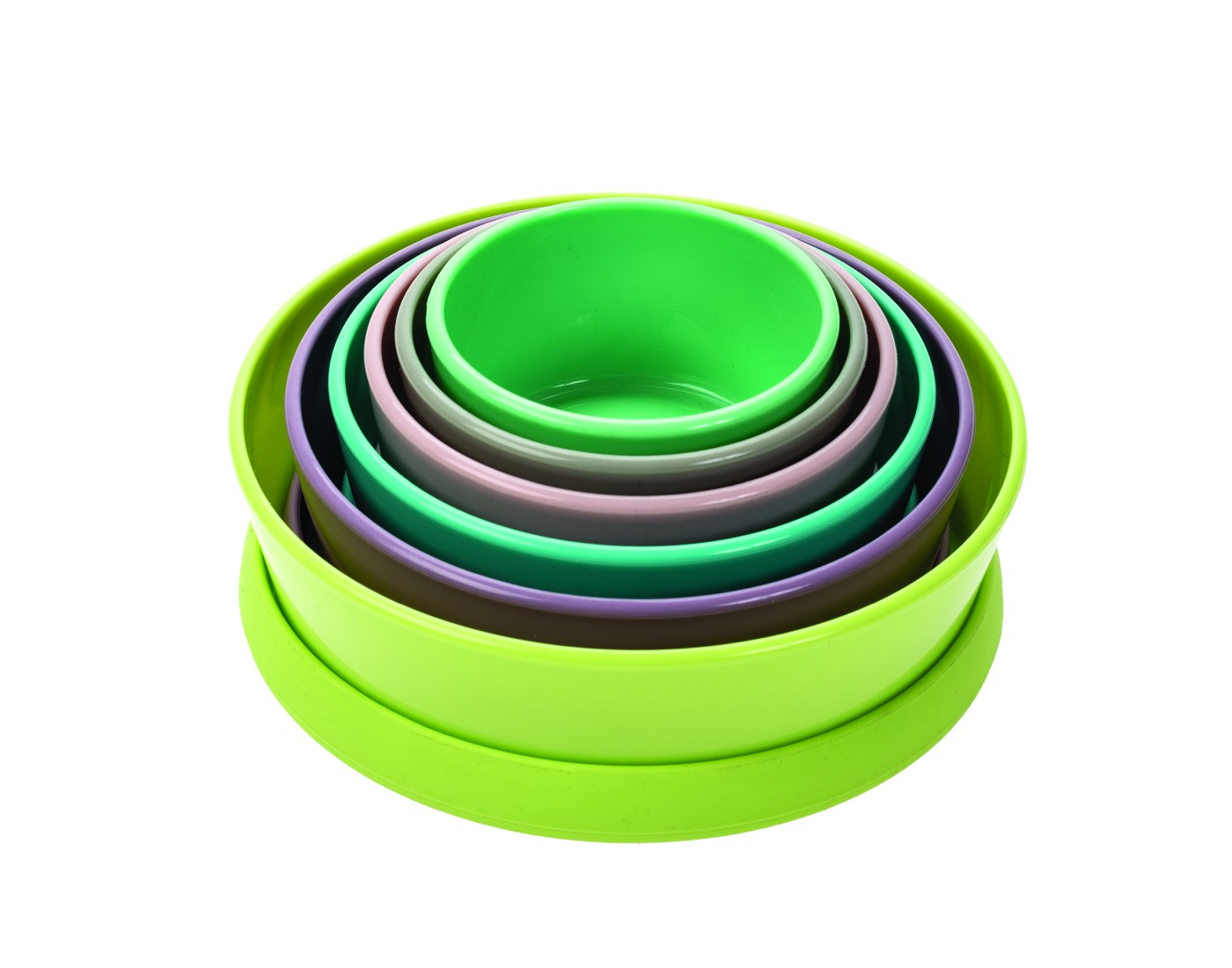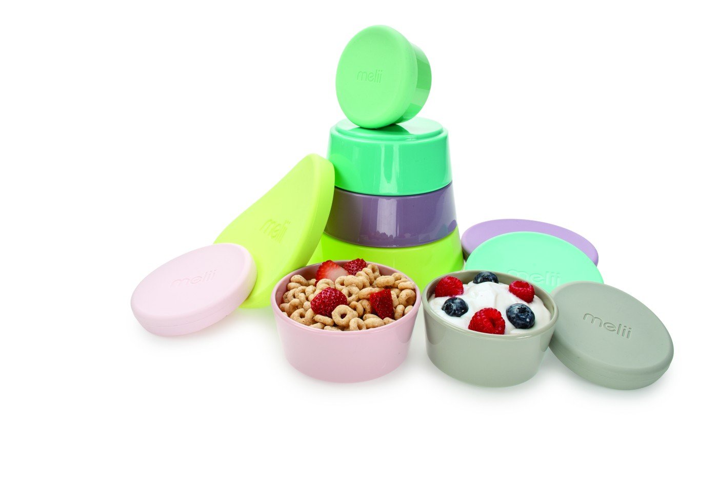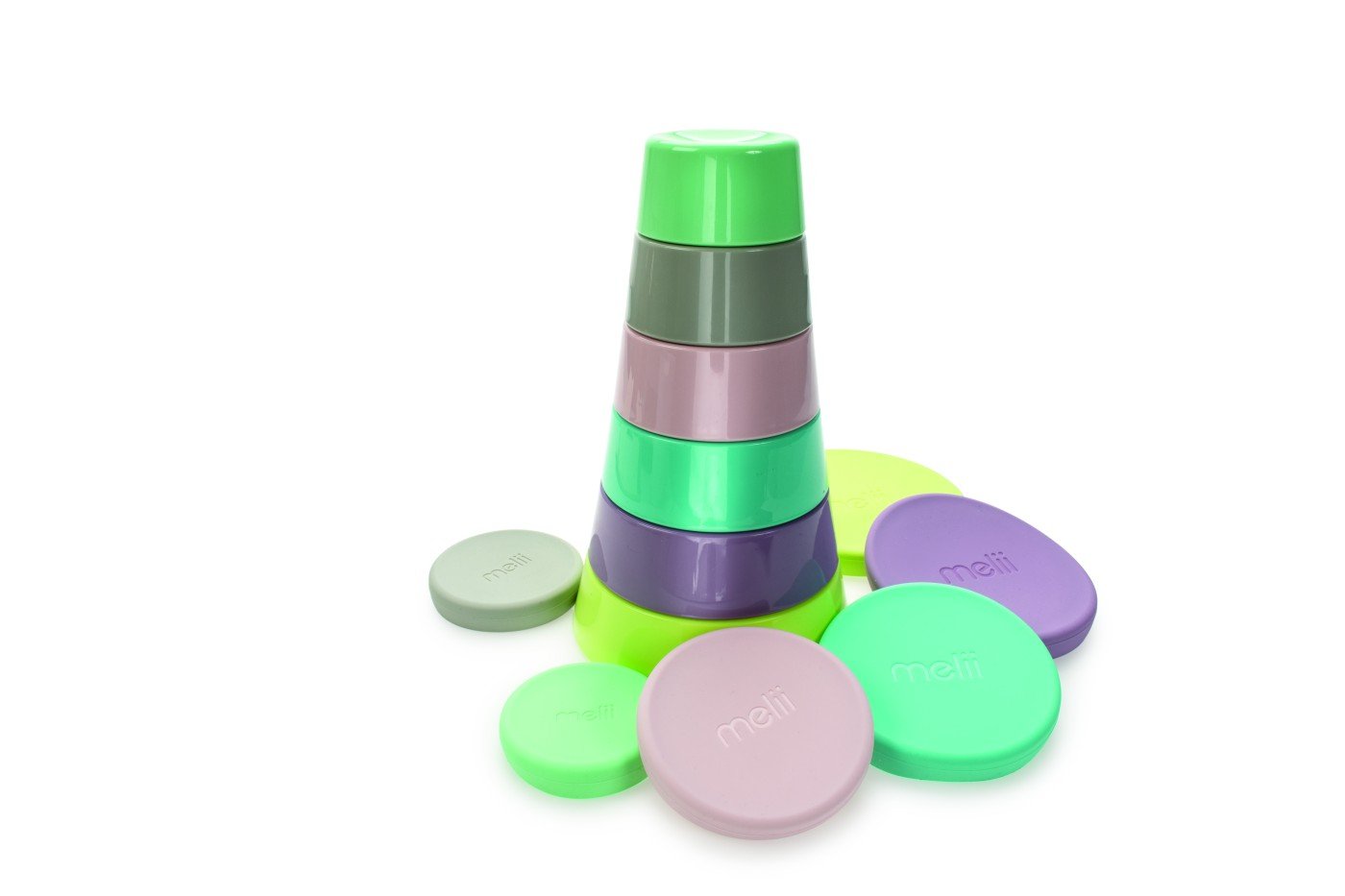 Set 6 recipiente hrana bebe, Melii, model turn Recipientele noastre din silicon, cu capac pentru asezare si imbinare, sunt recipiente alimentare care se pot suprapune intr-un turn distractiv. Ele se imbina una in cealalta pentru depozitare compacta si vin in 6 dimensiuni convenabile pentru toate nevoile dumneavoastra de depozitarea alimentelor, gustarilor si meselor. Capacul rezistent din silicon se intinde peste baza recipientului pentru o potrivire stransa, care sigileaza prospetimea si previne mizeriile. CARACTERISTICI PRODUS Recipiente usor de suprapus, intr-un turn distractive depozitare alimente si jucarie in acelasi timp, colorate in mai multe culori Recipientele se fixeaza unul de altul pentru o depozitare compacta Capac din silicon ermetic si antipicurare, cu o fixare stransa. Usor de curatat in masina de spalat vase pe raftul superior Fara BPA, plumb, PVC, cadmiu, ftalati Dimensiuni 150ml, 230ml, 300ml, 400ml, 530ml, 700ml
