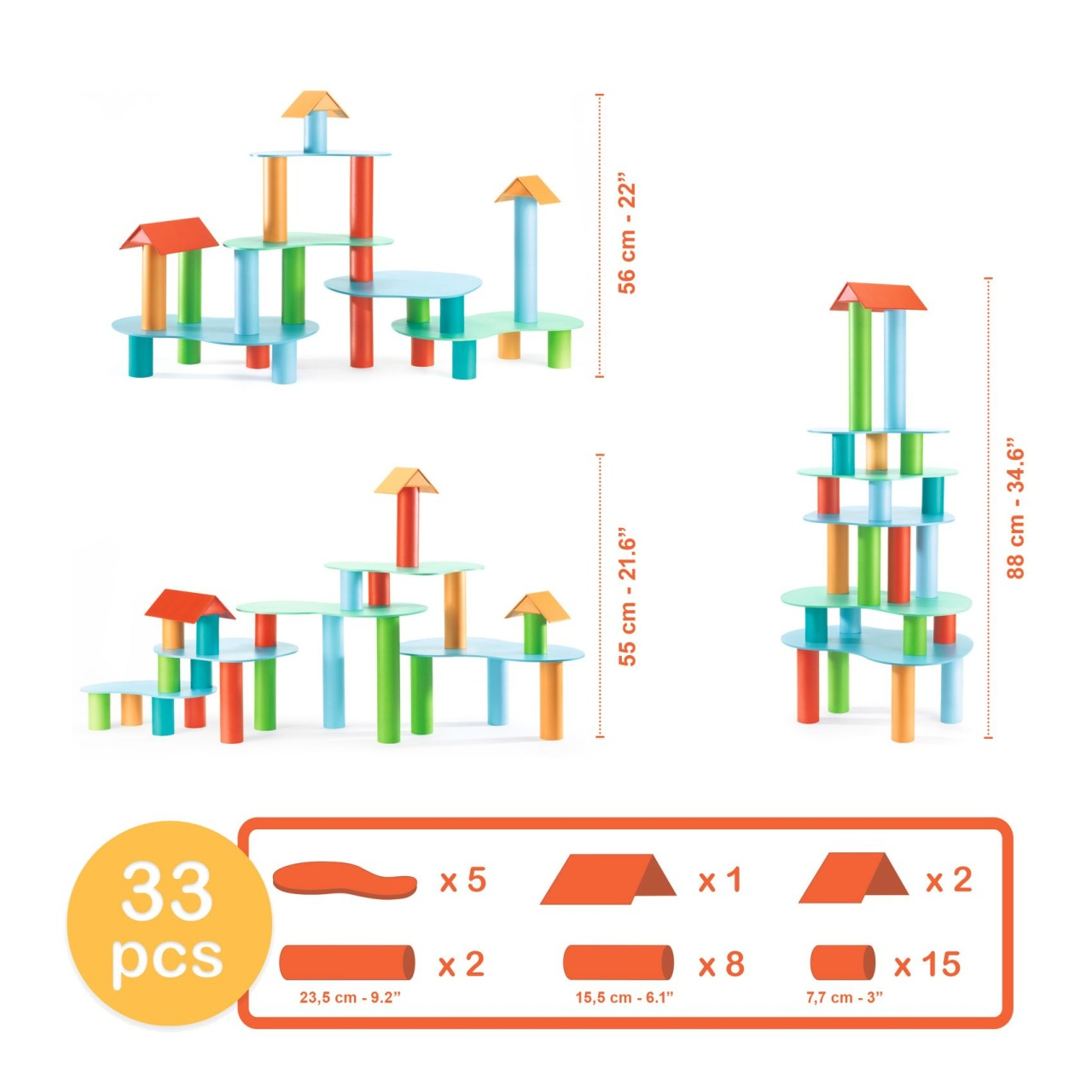 Joc de construit cu tuburi si placi Tubulo Tublo este un joc de construcție și imaginație pentru vârsta de 4 ani și peste. Tuburi și plăci în toate culorile, pentru construcții fără sfârșit. Simplu, puternic și stabil. Cei mici construiesc decoruri pe care apoi le populează cu figurinele lor preferate. Dezvoltă capacitatea de a aranja obiecte într-un spațiu, concentrarea, dexteritatea și echilibrul. Conținut: 28 tuburi de carton + 3 acoperișuri de carton + 6 plăci de lemn. Vârsta recomandată: +4 ani. Fabricat din carton certificat FSC® și lemn. Conform reglementărilor EN71&ASTM. AVERTISMENT: Contraindicat copiilor sub 3 ani. A se utiliza sub directa supraveghere a unui adult. Producător: Djeco, Franța.