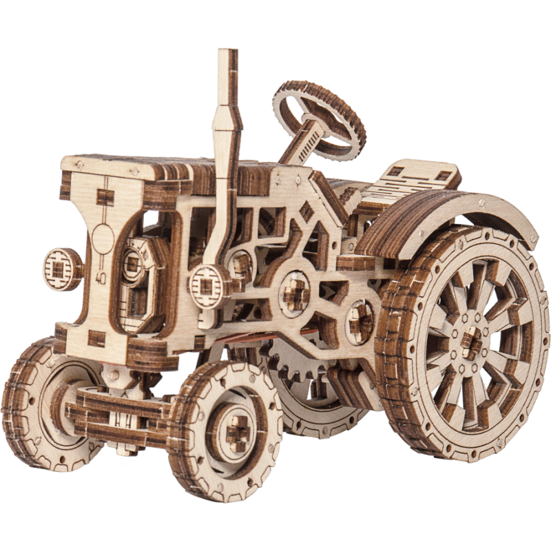 Tractorul nostru mecanic din lemn se va deplasa chiar si peste pietre! Asamblare autonomă fara lipici intr-un puzzle 3D captivant! Fiecare detaliu al acestei mașinării din lemn este conceput pentru a reproduce exact un tractor adevărat. Numarul de piese: 164 Timp de asamblare: 3 ore Dimensiunea modelului: 158 x 119 x 72 mm Mărimea ambalajului: 240 × 175 × 28 mm Greutatea pachetului: 0,4 kg