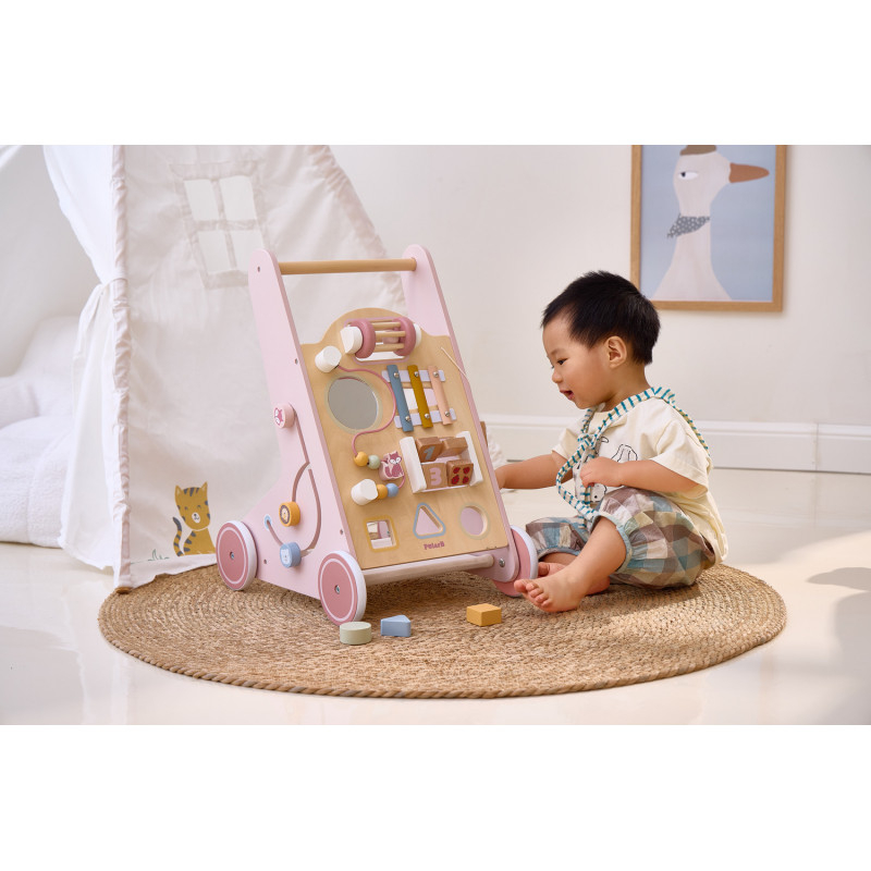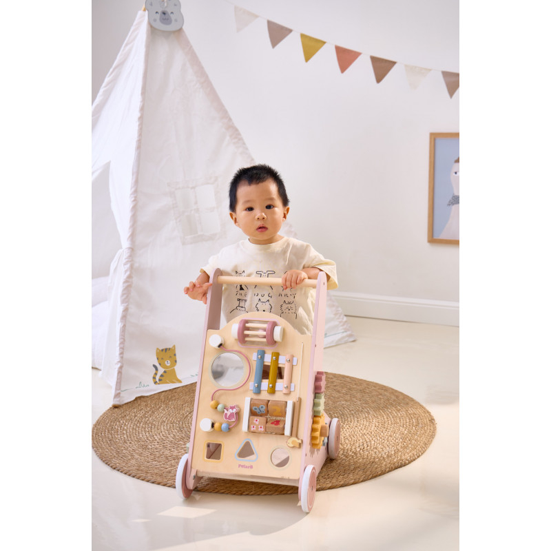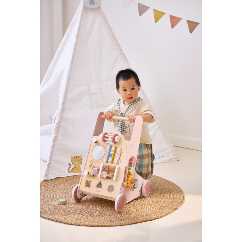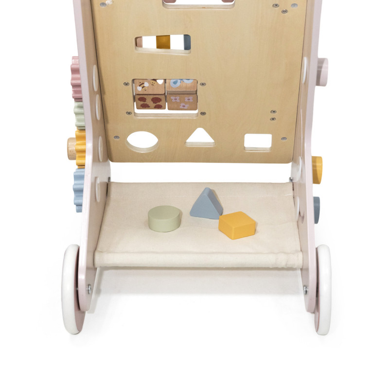 Ajuta copiii sa faca primii pasi si sa invete prin distractie!8 activitati interactive: oglinda, cuburi numerotate, zornaitoare, potrivire de forme, xilofon si multe altele!Stimuleaza motricitatea fina, coordonarea si gandirea logicaEchipat cu un spatiu de depozitare din panza pentru jucariiParte din gama jucarii educative si jucarii Montessori, acest antemergator este perfect pentru dezvoltarea echilibrului si a independentei copilului tau!