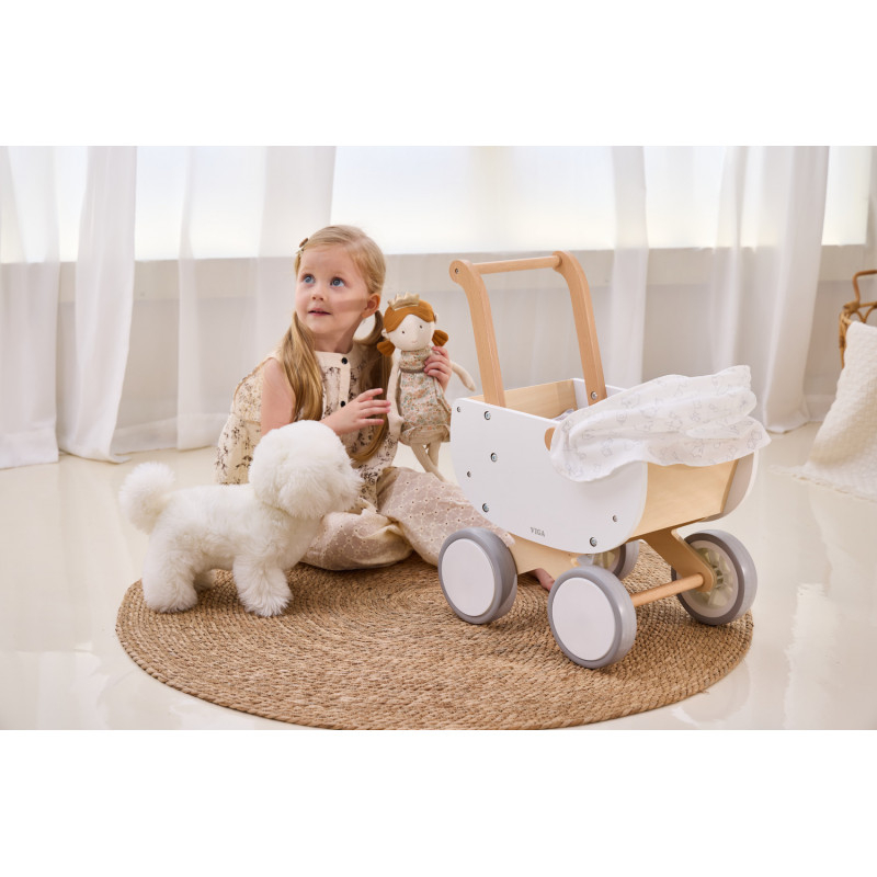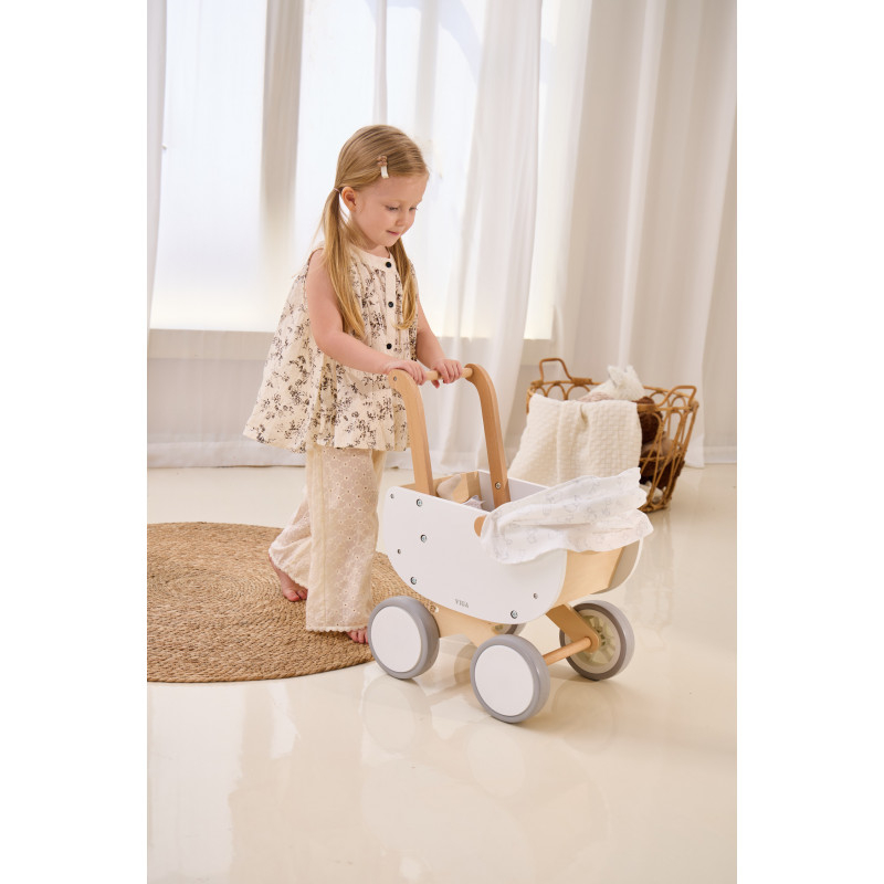 Carucior de papusi cu landou, roti mari si anvelope EVA pentru o structura solida si anti-alunecare.