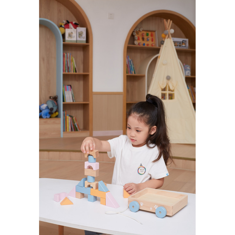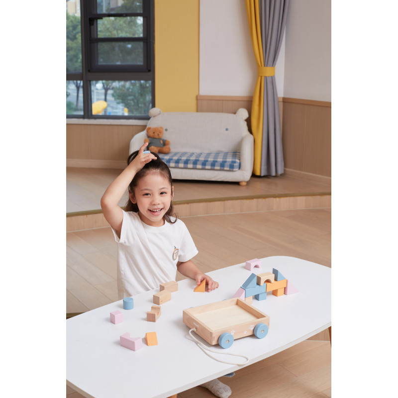 Acest vagon cu blocuri de tras dupa sine este atat de adorabil incat cei mici il vor adora si il vor lua cu ei oriunde merg!