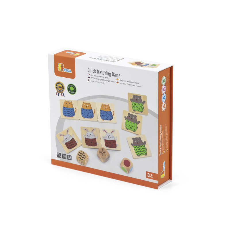 Setul include 27 de jetoane din lemn si 3 zaruri. Arunca cele 3 zaruri si gaseste animalul cu combinatia corecta. Uita-te atent si reactioneaza rapid!