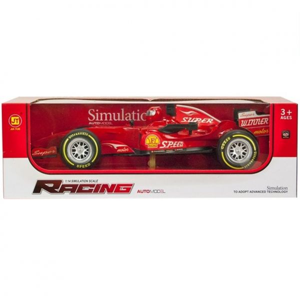 Masina de curse cu sunete si lumini, confectionata din plastic, cu detalii realistice.