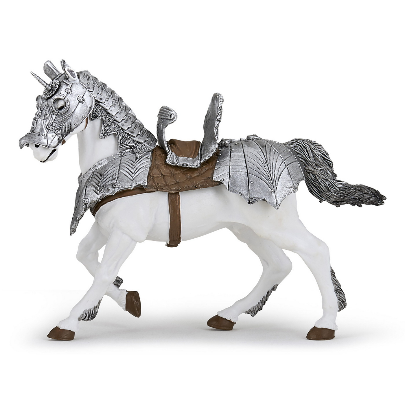 Cu figuri fantastice ale lumii, vei calaretui dragoni, vei lupta alaturi de orci si centauri si vei lupta impotriva puternicului minotaur.Cu figurinele lumii medievale traiesc batalii epice, apara-ti regatul impotriva inamicului sau infrunta cavaleri intr-un duel.Figurina Papo-Cal in armura este o jucarie educationala realizata manual, excelent pictata ce poate fi colectionata de catre copii pentru a-si completa colectia de personaje de poveste Papo.Figurina Papo-Cal in armura, este un excelent cadou pentru cei carora le place lumea fantastica sau celor care vor sa-si mareasca colectia de jucarii din gama Papo.Un excelent stimulent pentru a extinde imaginatia copiilor dezvoltand multe oportunitati de joaca.Produsul are urmatoarele dimensiuni 14.1 x 4.5 x 10.6cm si este recomandat copiilor cu varsta peste 3 ani.De mai bine de 20 de ani, Papo inoveaza constant si ii face pe copii din intreaga lume sa viseze cu o gama bogata de peste 600 de produse, reprezentand 12 lumi, animale si personaje. De la modelul original la serie, fiecare dintre figurinele Papo a fost conceputa si creata in Franta pentru a fi fabricata intr-o permanenta preocupare pentru calitate. Pictate manual, atentia la detalii este acum recunoscuta.Figurinele Papo se disting prin acuratete si realism, detaliile sunt de asa natura incat am putea crede ca se vor pune in miscare.