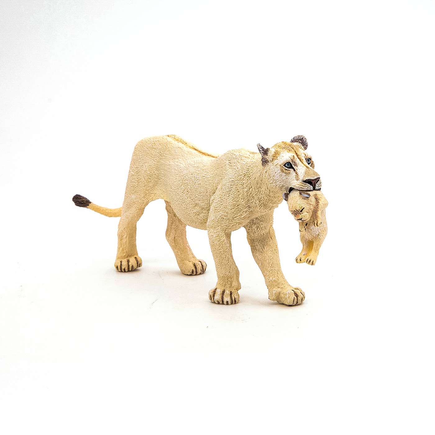 Vizitati cerbul cu coada alba maiestuoasa in inima padurilor, explorati savana alaturi de puternicul tigru de Sumatra sau urcati pe varfuri acoperite de zapada pentru a cauta leopardul de zapada. Jucaria Leoaica alba cu pui este o figurina pictata manual care aduce produsul foarte aproape de realitate prin cele mai mici detalii realizate cu o acuratete inalta. Figurina Leoaica alba cu pui poate fi o jucarie educationala pentru copii, dar si o piesa de colectie pentru pasionatii fara varsta. Leul este o specie de mamifer carnivor din familia felinelor ce traieste in Africa. Exista trei subspecii de lei leul african, leul indian si leul alb. Cele mai raspandite specii sunt leul african si cel indian, leul alb fiind foarte rar ( majoritatea traind in captivitate ). In diferite culturi , leoaica alba este considerata un animal divin, probabil datorita raritatii acestui animal. Un excelent stimulent pentru a extinde imaginatia copiilor dezvoltand multe oportunitati de joaca. Produsul are urmatoarele dimensiuni 3.5 x 14.5 x 6.5cm si este recomandat copiilor cu varsta peste 3 ani. De mai bine de 20 de ani, Papo inoveaza constant si ii face pe copii din intreaga lume sa viseze cu o gama bogata de peste 600 de produse, reprezentand 12 lumi, animale si personaje. De la modelul original la serie, fiecare dintre figurinele Papo a fost conceputa si creata in Franta pentru a fi fabricata intr-o permanenta preocupare pentru calitate. Pictate manual, atentia la detalii este acum recunoscuta. Figurinele Papo se disting prin acuratete si realism, detaliile sunt de asa natura incat am putea crede ca se vor pune in miscare.