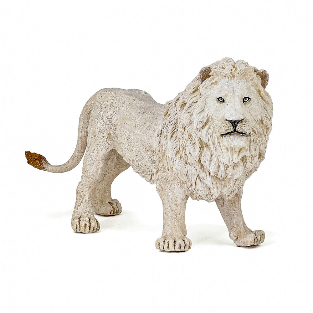 Vizitati cerbul cu coada alba maiestuoasa in inima padurilor, explorati savana alaturi de puternicul tigru de Sumatra sau urcati pe varfuri acoperite de zapada pentru a cauta leopardul de zapada. Felina magnifica, leul este un simbol al fortei si curajului. Este cel mai puternic si cel mai mare carnivor din Africa. Recunoscut dupa coama lunga, leul a fost botezat &bdquoregele animalelor&rdquo. Are un corp lung, cu muschi impresionanti si picioare puternice cu gheare. Acest pradator mare cantareste aproape 250 kg. El domneste asupra teritoriului sau si isi protejeaza trupa formata din mai multe femele. Se hraneste in principal cu vite si vaneaza alte animale precum bivoli, girafe, zebre . Poate devora pana la 30 kg de carne odata. Leul alb este foarte rar in salbaticie, blana lui dandu-i un dezavantaj cert atunci cand vine vorba de vanatoare. intr-adevar, il face prea vizibil pentru ochii prazii sale. Prin urmare, traieste in principal in rezervatii naturale sau parcuri zoologice. Produsul are urmatoarele dimensiuni 14.5 x 4.7 x 8.2cm si este recomandat copiilor cu varsta peste 3 ani. De mai bine de 20 de ani, Papo inoveaza constant si ii face pe copii din intreaga lume sa viseze cu o gama bogata de peste 600 de produse, reprezentand 12 lumi, animale si personaje. De la modelul original la serie, fiecare dintre figurinele Papo a fost conceputa si creata in Franta pentru a fi fabricata intr-o permanenta preocupare pentru calitate. Pictate manual, atentia la detalii este acum recunoscuta. Figurinele Papo se disting prin acuratete si realism, detaliile sunt de asa natura incat am putea crede ca se vor pune in miscare.