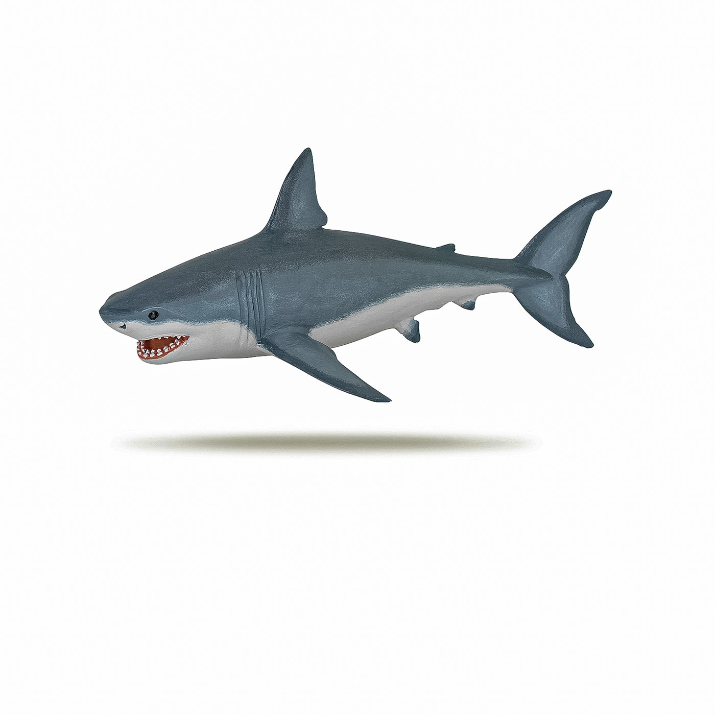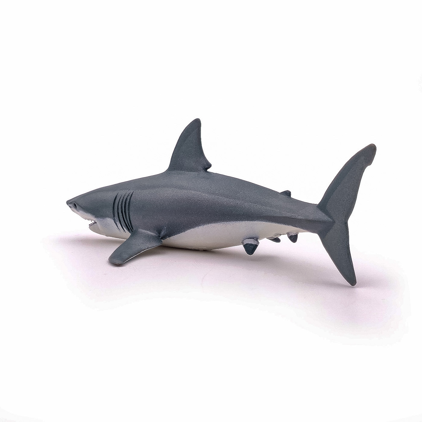 Scufundati-va cu balenele cu cocoasa, sariti in valuri alaturi de delfini sau deveniti un om-broasca capabil sa exploreze adancurile oceanului in cautarea unor exemplare magnifice precum pestele clovn. Ce stim despre Rechinul alb, cunoscut si ca Marele Alb? Este probabil cel mai faimos din specia rechinilor fiind recunoscut ca un inotator rapid. Rechinul alb este cel mai mare carnivor marin. Cel mai mare rechin prins vreodata avea 6.4 metri si cantarea 3312 kg . Stramosii lui erau de trei ori mai mari si aveau dinti de 16 cm. Numarul de rechini albi a scazut in ultimul timp astfel incat ocrotirea acestui animal a devenit o noua preocupare. Produsul are urmatoarele dimensiuni 17.8 x 11.8 x 6.2cm si este recomandat copiilor cu varsta peste 3 ani. De mai bine de 20 de ani, Papo inoveaza constant si ii face pe copii din intreaga lume sa viseze cu o gama bogata de peste 600 de produse, reprezentand 12 lumi, animale si personaje. De la modelul original la serie, fiecare dintre figurinele Papo a fost conceputa si creata in Franta pentru a fi fabricata intr-o permanenta preocupare pentru calitate. Pictate manual, atentia la detalii este acum recunoscuta. Figurinele Papo se disting prin acuratete si realism, detaliile sunt de asa natura incat am putea crede ca se vor pune in miscare.