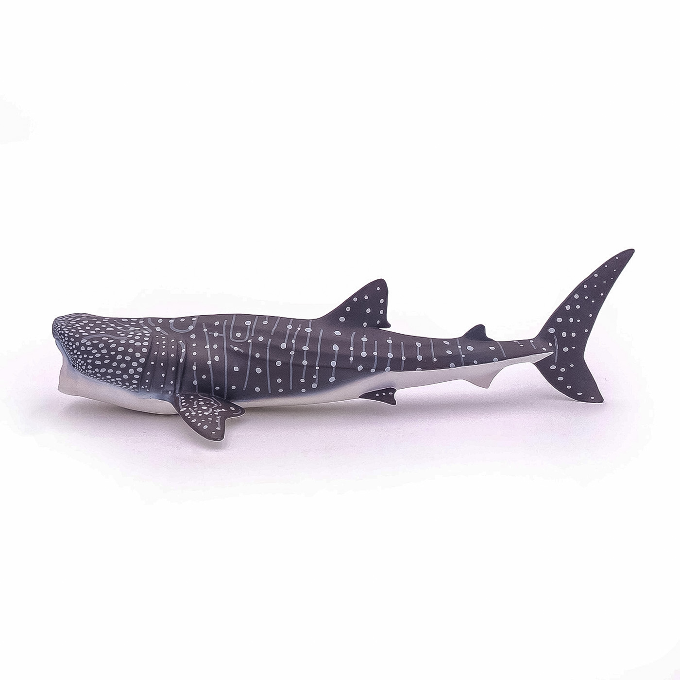 Scufundati-va cu balenele cu cocoasa, sariti in valuri alaturi de delfini sau deveniti un om-broasca capabil sa exploreze adancurile oceanului in cautarea unor exemplare magnifice precum pestele clovn. Rechinul-balena, usor de recunoscut dupa pielea sa gri inchisa marcata de pete deschise, precum si de benzile orizontale si verticale, de la alb la galben, este cel mai mare peste din lume. Cu toate acestea, in ciuda dimensiunilor sale impunatoare si a 34 de tone, rechinul-balena este complet lipsit de agresivitate si este inofensiv pentru oameni. La fel ca balena albastra, aceasta din urma se hraneste exclusiv cu plancton, alge sau chiar animale microscopice, pe care le absoarbe prin gura mare. Produsul are urmatoarele dimensiuni 10.5 x 24.7 x 6.5cm si este recomandat copiilor cu varsta peste 3 ani. De mai bine de 20 de ani, Papo inoveaza constant si ii face pe copii din intreaga lume sa viseze cu o gama bogata de peste 600 de produse, reprezentand 12 lumi, animale si personaje. De la modelul original la serie, fiecare dintre figurinele Papo a fost conceputa si creata in Franta pentru a fi fabricata intr-o permanenta preocupare pentru calitate. Pictate manual, atentia la detalii este acum recunoscuta. Figurinele Papo se disting prin acuratete si realism, detaliile sunt de asa natura incat am putea crede ca se vor pune in miscare.