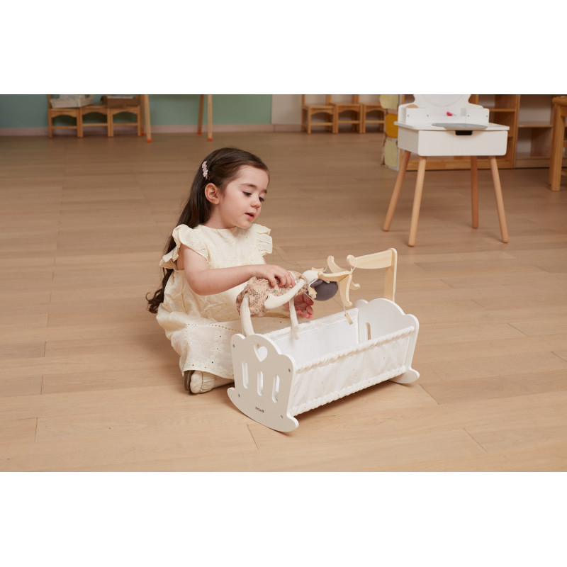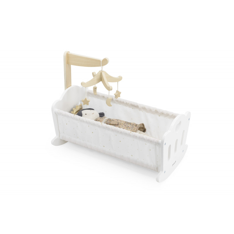 Adormiti papusa in acest leagan pentru papusi frumos realizat, cu atentie la detalii. Acest leagan este completat de o perna moale din bumbac, o patura decorata cu un imprimeu fermecator cu stele si luna, si un carusel adorabil pentru un decor deosebit. Special conceput pentru papusi de pana la 38 cm, este alegerea ideala pentru a stimula jocul imaginar creativ si pentru a asigura vise dulci si pline de poveste pentru micuta ta. Jucarie educativa din lemn, Montessori. Material: lemn Dimensiuni: 41,9 x 23 x 33,3 cm; Varsta recomandata: 3 ani + Ambalare: 1 colet, 1,5 kg AVERTISMENT! Contraindicat copiilor mai mici de 18 luni. Jucaria/produsul poate contine piese mici care se pot inghiti sau inhala existand pericolul de sufocare sau nu este potrivita copiilor mai mici de luni. Toate jucariile marca VIGA sunt fabricate din lemn de calitate cu vopsele si cerneluri non-toxice, supuse testelor de siguranta respectand standardele pentru jucarii ale Uniunii Europene EN71 si ASTM. Nu lasati ambalajul produsului la indemana copiilor. Indepartati orice ambalaj al produsului inainte de a da jucaria copilului. Va recomandam sa supravegheati copilul in timp ce se foloseste produsul. Pastrati instructiunile si etichetele pentru referinte viitoare. Feriti produsul de foc, temperaturi ridicate si umiditate.