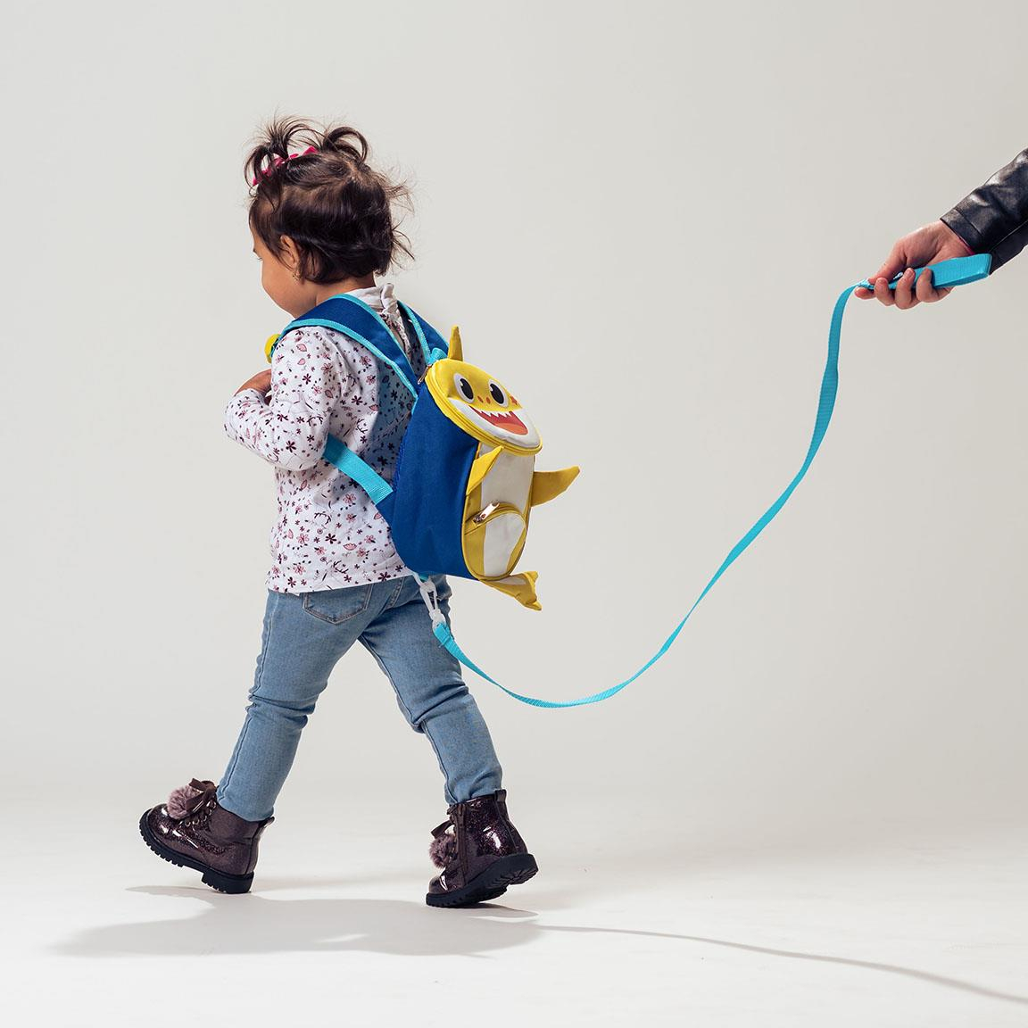 Mini rucsac Baby Shark, prevazut cu ham pentru controlul celor mici.