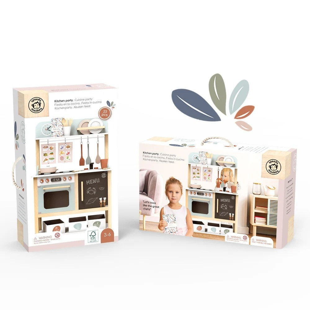 Bucătărie din lemn pentru copii, Speedy Monkey Inspirată din viața de zi cu zi, bucătăria este complet adaptată vârstei, îmbiind copiii să pregătească rețete delicioase, experimentând astfel lumea adulților într-un mod sigur și educativ. Concepută pentru a încuraja dezvoltarea abilităților motorii, creativitatea și interacțiunea socială, această bucătărie din lemn este echipată cu 20 de accesorii viu colorate: aragaz, cuptor, chiuvetă, ceas de perete, cești, farfurii, meniuri și multe altele. Ambalaj compact. Caracteristici: Joc de rol realist prin care copiii pot imita activitățile din bucătărie într-un mod creativ și sigur Multimple accesorii incluse Design colorat și atrăgător, muchii rotunjite, finisare atentă Încurajează dexteritatea, jocul în echipă și comunicarea Recomandat pentru: Copii peste 3 ani Joacă educativă acasă sau la grădiniță Cadou creativ, eco-friendly și rezistent Dimensiuni bucătărie asamblată: 55 x 31 x 87.7 cm Realizat din lemn certificat FSC®, vopsele non-toxice pe bază de apă, sigure pentru copii. AVERTISMENT: Contraindicat copiilor sub 3 ani. Se recomandă supravegherea copilului în timpul jocului. Producător: Speedy Monkey