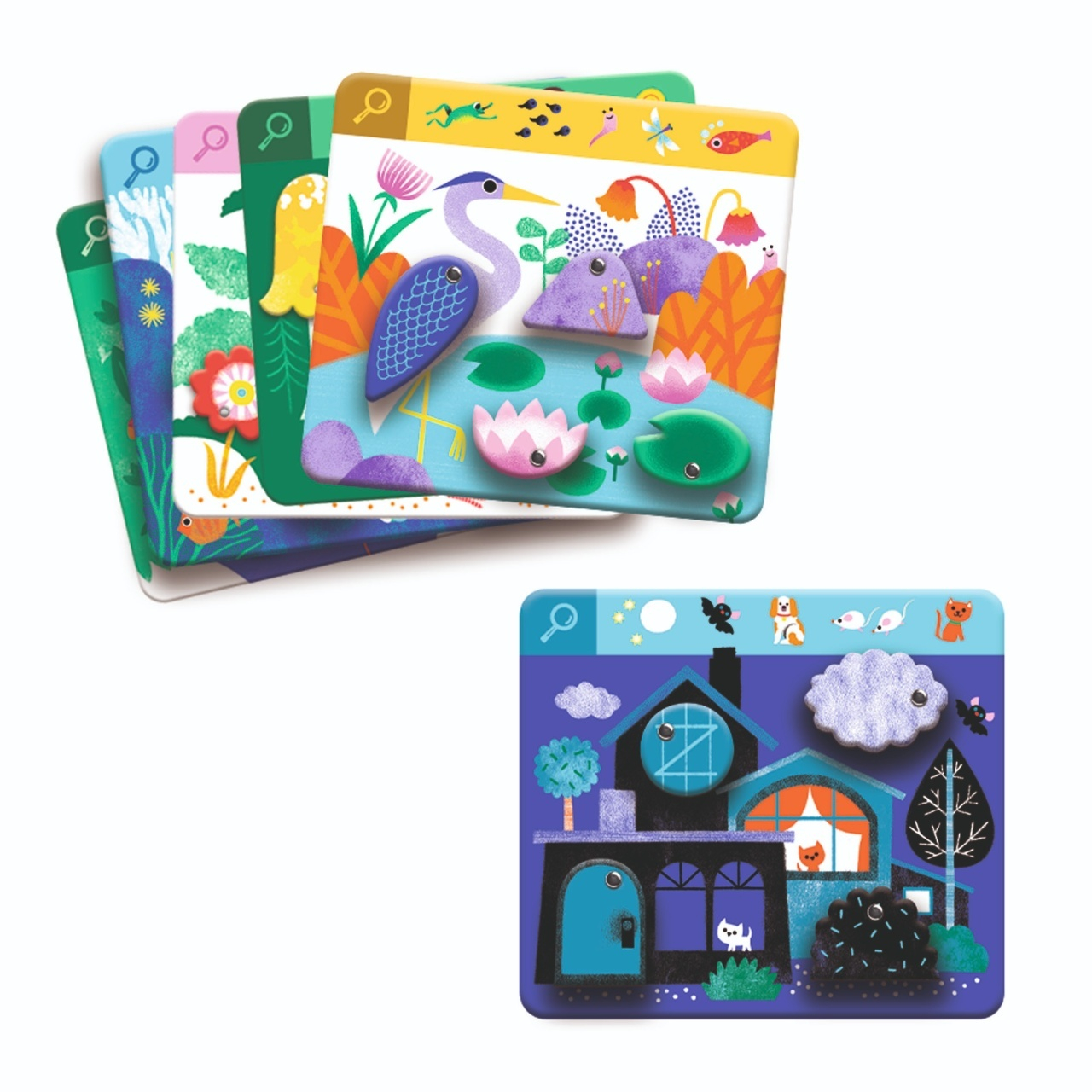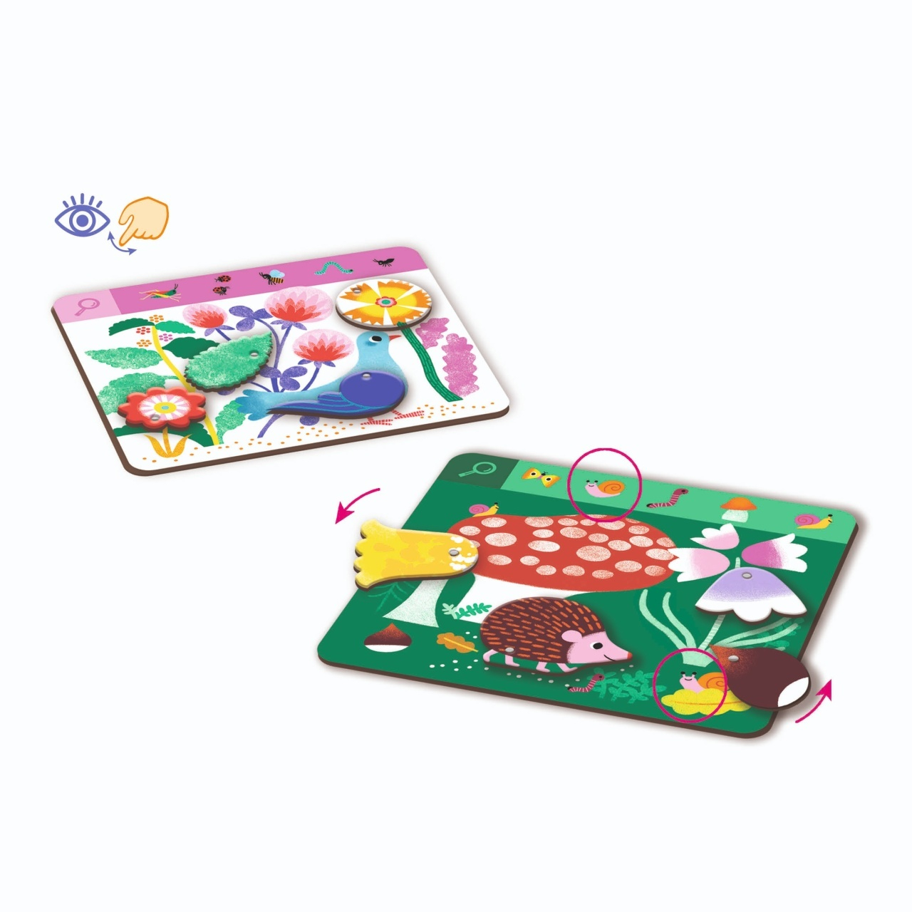 Primul joc „Caută și găsește” – Animăluțe drăgălașe în mișcare Un joc original și plin de acțiune, pentru primii pași în dezvoltarea atenției și spiritului de observație! Cu 6 planșe interactive și rotițe mobile, acest joc educativ le oferă copiilor o experiență senzorială unică și distractivă. Imaginile prind viață sub degetele celor mici, transformând fiecare rundă într-un joc dinamic de de-a v-ați ascunselea cu animăluțe simpatice ! Joaca devine astfel o formă naturală de învățare prin explorare și descoperire. Fiecare kit Eduludo extrem de educativ, se concentrează pe un proces de învățare specific pentru a ajuta copiii să-și dezvolte abilitățile. Conținut: 6 planșe cu elemente rotative și set de instrucțiuni. Vârsta recomandată: 3 - 6 ani. Joc confecționat din carton și hârtie certificat FSC®, prietenoase cu mediul. Conform reglementărilor EN71&ASTM. AVERTISMENT: Contraindicat copiilor mai mici de 3 ani, conține piese mici, pericol de sufocare. A se folosi sub directa supraveghere a unei persoane adulte. Producă tor: D jeco, F ranța
