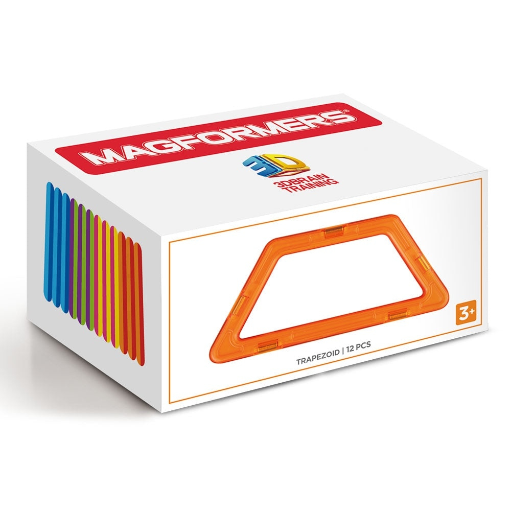 O cutie de 12 piese magnetice in forme de trapez, un accesoriu pentru orice colectie Magformers.