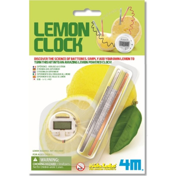 Descoperiti stiinta bateriilor, construind un ceas cu lamaie. In pachet sunt incluse placi de cupru si zinc, sarma si un ceas. Lamaia necesara nu este inclusa. Recomandat copiiilor peste 5 ani.
