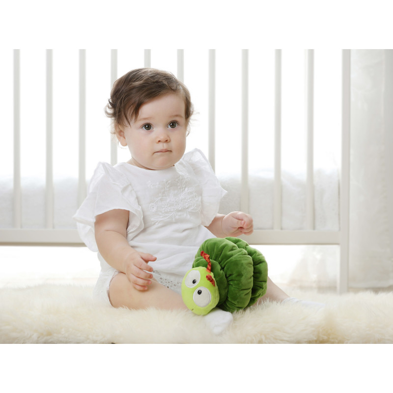 Omiduta Flups — jucarie interactiva pentru bebelusiMica omida s-a ghemuit intr-un mot verde si moale, lasand sa i se vada doar ochisorii mari si antenele colorate. Dar surpriza! Cand o intinzi la lungimea ei completa de 21 cm, omiduta prinde viata si vibreaza amuzant inapoi, de parca ar spune siret: „Mai incercam o data?” — distractia e garantata, nu doar pentru bebelusi!Ce o face speciala?Realizata dintr-un material foarte moale si pufos — perfect pentru manutele curioaseFunctie de zornait si vibratie — pentru a stimula simturile micutuluiUmplutura delicata din vata din poliester — confortabila si siguraEticheta originala sigikid — garantia calitatiiIngrijire usoara: se spala simplu, la 30°C, program delicat.Un companion perfect pentru joaca si dezvoltarea armonioasa a copilului tau!