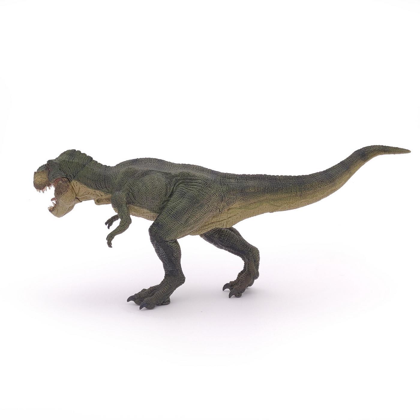 Cu dinozauri, calcati pamantul jurasic, intalniti legendarul T-Rex, plimbati-va prin campii vaste cu velociraptorul sau zburati cu un pteranodon. T-Rex a fost cel mai mare dinozaur carnivor care a aparut in Cretacicul superior,in era Mezozoica acolo unde se afla astazi Mongolia si America de Nord. Acesta este cel mai mare animal de prada care a trait vreodata pe Glob. Paleontologii au estimat ca lungimea acestui dinozaur ca fiind de 14 m, inaltimea coapselor de 6 m si greutatea de 7-10 tone. Falcile unui T-REX puteau fi deschise foarte larg deoarece erau puse in miscare de tendoane si muschi puternici. Figurina Papo T-Rex Verde isi pastreaza calitatile si proprietatile mult timp , putand fi pastrata pentru generatia urmatoare! Produsul are urmatoarele dimensiuni 32 x 7 x 13.3cm si este recomandat copiilor cu varsta peste 3 ani. De mai bine de 20 de ani, Papo inoveaza constant si ii face pe copii din intreaga lume sa viseze cu o gama bogata de peste 600 de produse, reprezentand 12 lumi, animale si personaje. De la modelul original la serie, fiecare dintre figurinele Papo a fost conceputa si creata in Franta pentru a fi fabricata intr-o permanenta preocupare pentru calitate. Pictate manual, atentia la detalii este acum recunoscuta. Figurinele Papo se disting prin acuratete si realism, detaliile sunt de asa natura incat am putea crede ca se vor pune in miscare.