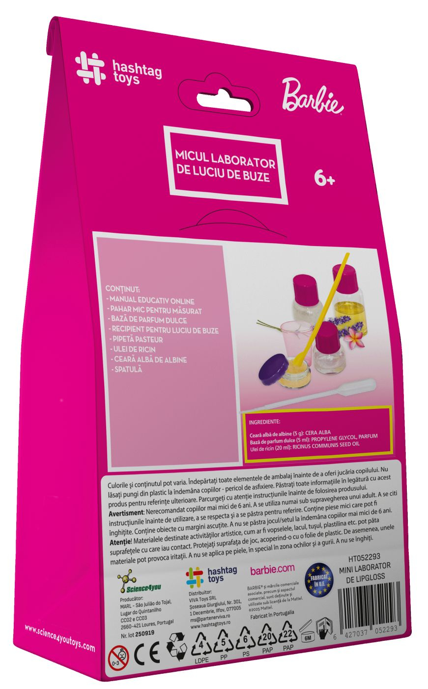 Cu aceasta jucarie educativa, micul laborator de luciu de buze, vei invata cum sa creezi propriile luciuri de buze si scruburi! Exploreaza-ti culorile preferate, personalizeaza si parfumeaza-ti glossurile si distreaza-te realizand produse cosmetice uimitoare, invatand in acelasi timp stiinta ingrijirii buzelor! Continutul kitului pahar gradat mic, baza de parfum dulce, ceara de albine alba, ulei de ricin, pipeta Pasteur, spatula, recipient pentru luciu de buze.
