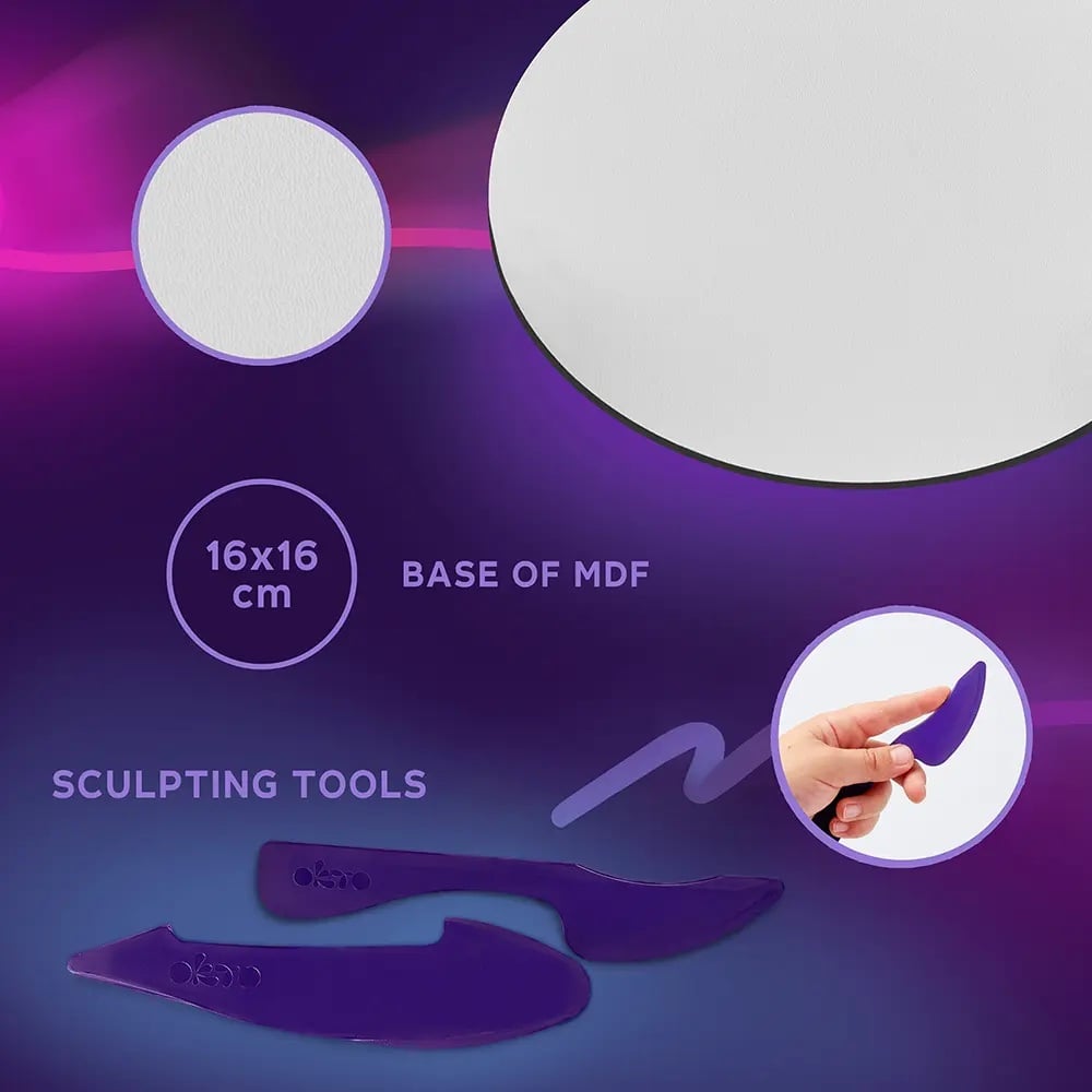 _x000D_ATENTIE! Argila din ingrediente naturale se usuca in aer liber timp de 12 ore. Argila nu se lipeste de maini, nu lasa urme si se strange rapid de pe suprafete solide. Pentru a-si pastra elasticitatea, trebuie pastrata in recipient inchis. Daca uitati argila afara pentru un timp mai indelungat si se intareste, ii puteti reda elasticitatea amestecand-o cu cateva picaturi de apa.