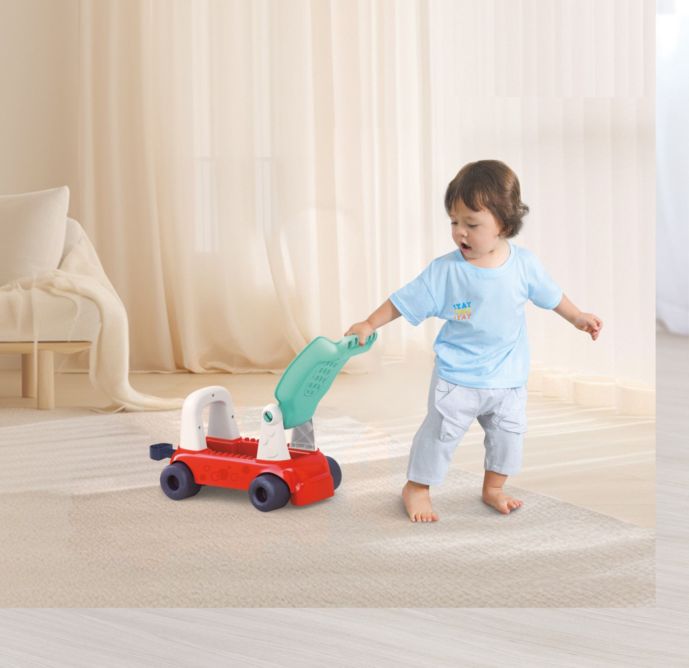 Jucarie de impins 4 in 1 Trenut combina doua parti detasabile partea de tren si scaunul. Partea cu trenul ofera o multime de jocuri pentru copii, inclusiv o varietate de sunete, muzica si efecte luminoase. Scaunul poate fi transformat intr-un vagon pentru transportarea si depozitarea jucariilor. Acesta este cadoul perfect pentru copiii cu varste cuprinse intre 1 si 3 ani. Caracteristici 4 moduri de joaca(roaba, carucior, carucior pentru transportul jucariilor si scaun de joaca), 9 jocuri educative(o varietate de jocuri pentru dezvoltarea copilului), o varietate de muzica si efecte sonore de tren(sunete si melodii interesante), compartiment de depozitare(un loc convenabil pentru a depozita jucariile), panou de blocuri(un panou de joaca pentru dezvoltarea abilitatilor motorii si cognitive). Beneficiile pe care le aduce sunt dezvoltarea motricitatii (jocurile cu rostogolirea, mersul si deplasarea vagonului ajuta la dezvoltarea abilitatilor motorii mari), dezvoltare senzoriala(efectele sonore si luminoase stimuleaza perceptia auditiva si vizuala), dezvoltare cognitiva(jocurile educative si panoul cu blocuri ajuta la dezvoltarea gandirii logice si a abilitatilor de rezolvare a problemelor), interactiunea sociala(posibilitatea de a se juca cu alti copii promoveaza dezvoltarea abilitatilor de comunicare), siguranta si confort(stabilitatea ridicata a designului si scaunul moale asigura confortul si siguranta in timpul jocului). Jucarie de impins 4 in 1 Trenut va fi un companion excelent pentru bebelus, contribuind la dezvoltarea sa si oferind jocuri distractive si active.