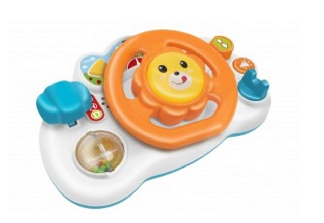 Design captivant: Volanul are un design atractiv si colorat, cu detalii vesele si prietenoase pentru copii. Forma ergonomica si dimensiunile potrivite pentru manutele mici il fac usor de manevrat si de explorat._x000D_