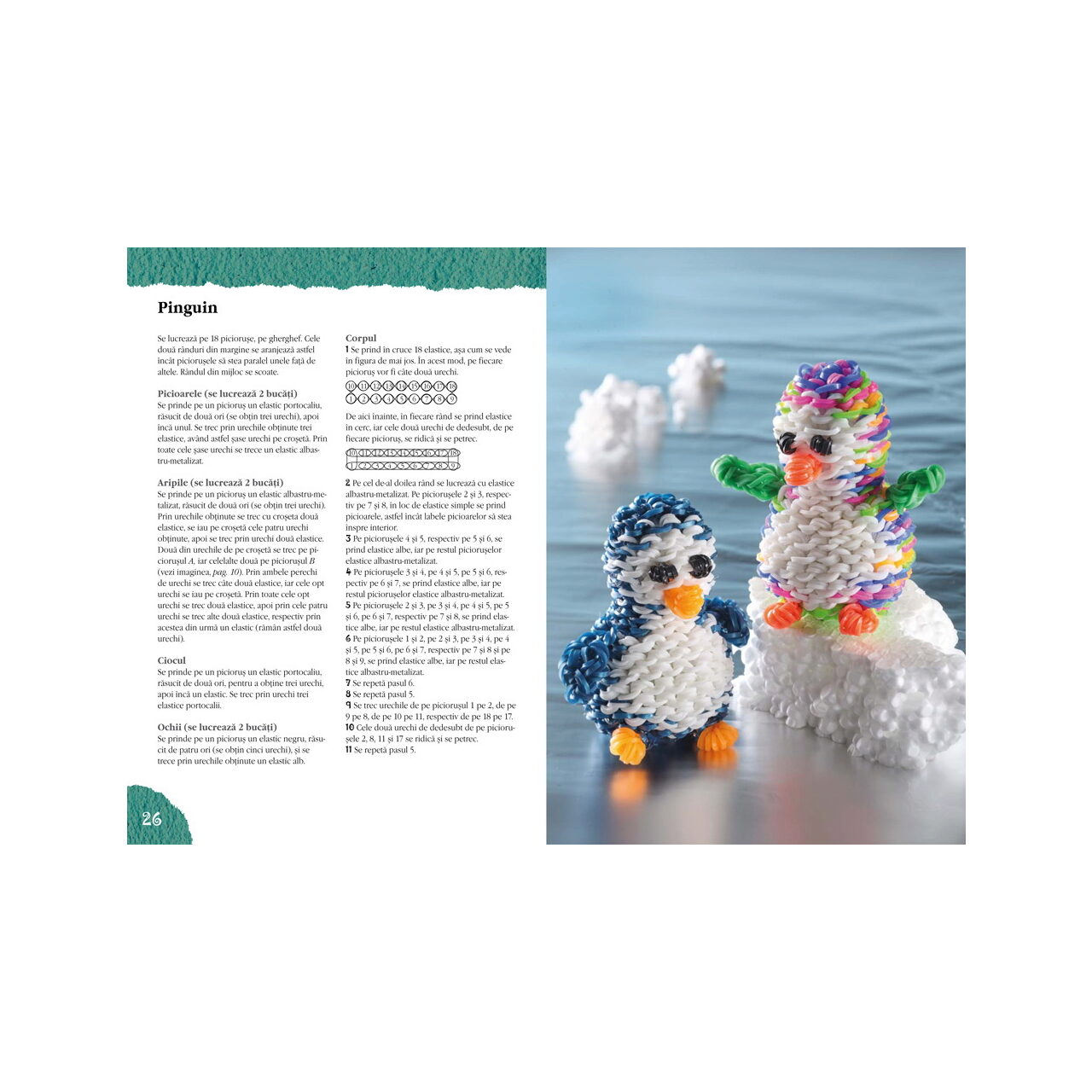 În primele pagini se prezintă tehnicile de împletire a cerculeţelor elastice. Vă recomandăm exersarea acestora mai întâi şi apoi se poate trece la confecţionarea modelelor din carte sau, mai mult, a celor concepute de noi înşine. Culorile se pot modifica după gusturile şi preferinţele fiecăruia.