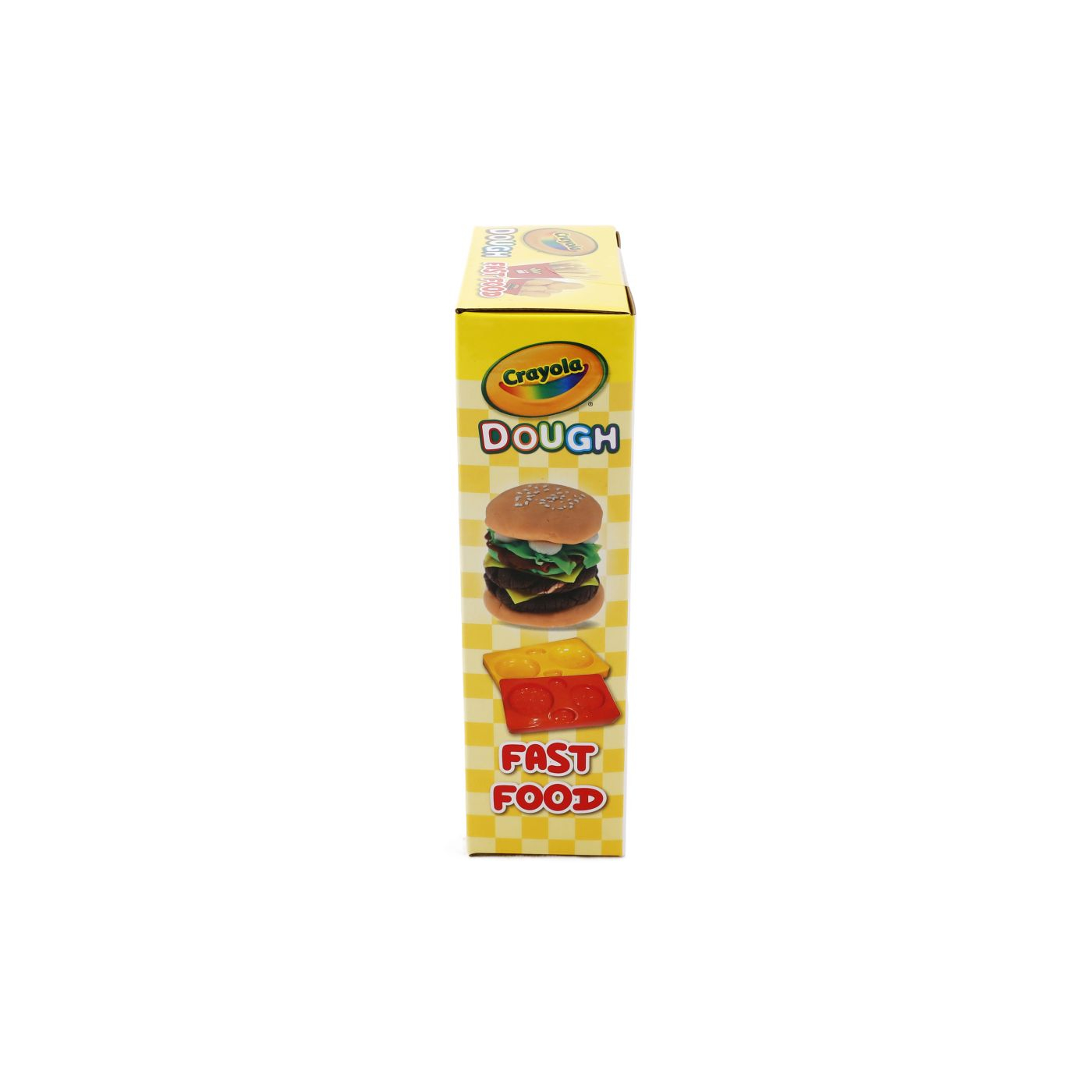 Crayola Dough Fast Food Playset transforma joaca intr-un festin creativ. Destinat copiilor de peste 3 ani, acest set delicios include 3 cutii de plastilina 56 g fiecare, 2 forme pentru hamburgeri, 3 ustensile de taiat si 2 tavi din hartie pentru servire. Cei mici pot modela cartofi prajiti, chifle, felii de rosii si alte delicii din plastilina, creand propriul meniu fast food. Un mod distractiv si educativ de a stimula imaginatia, dexteritatea si jocul de rol!