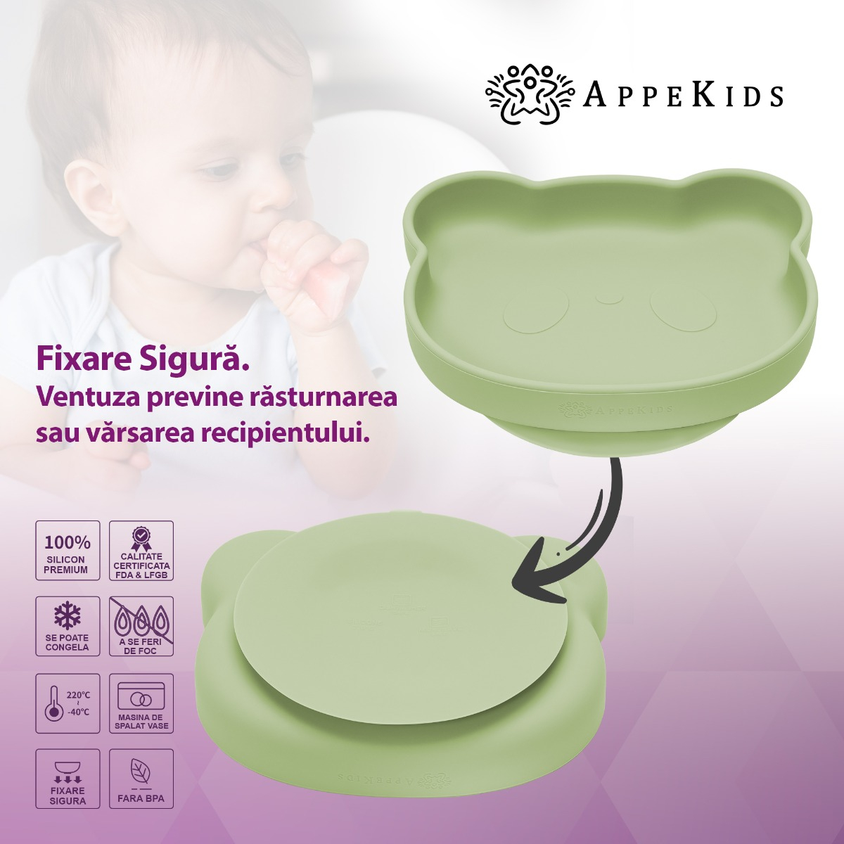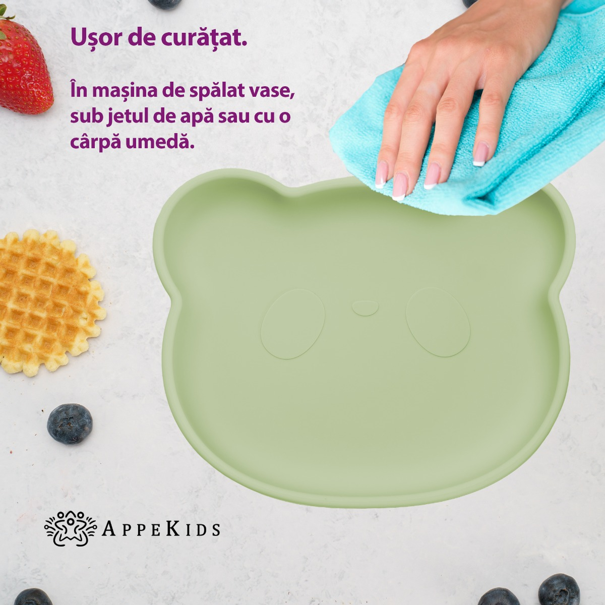 Farfurie din silicon cu ventuza, AppeKids, The Little Bear - Raw Green